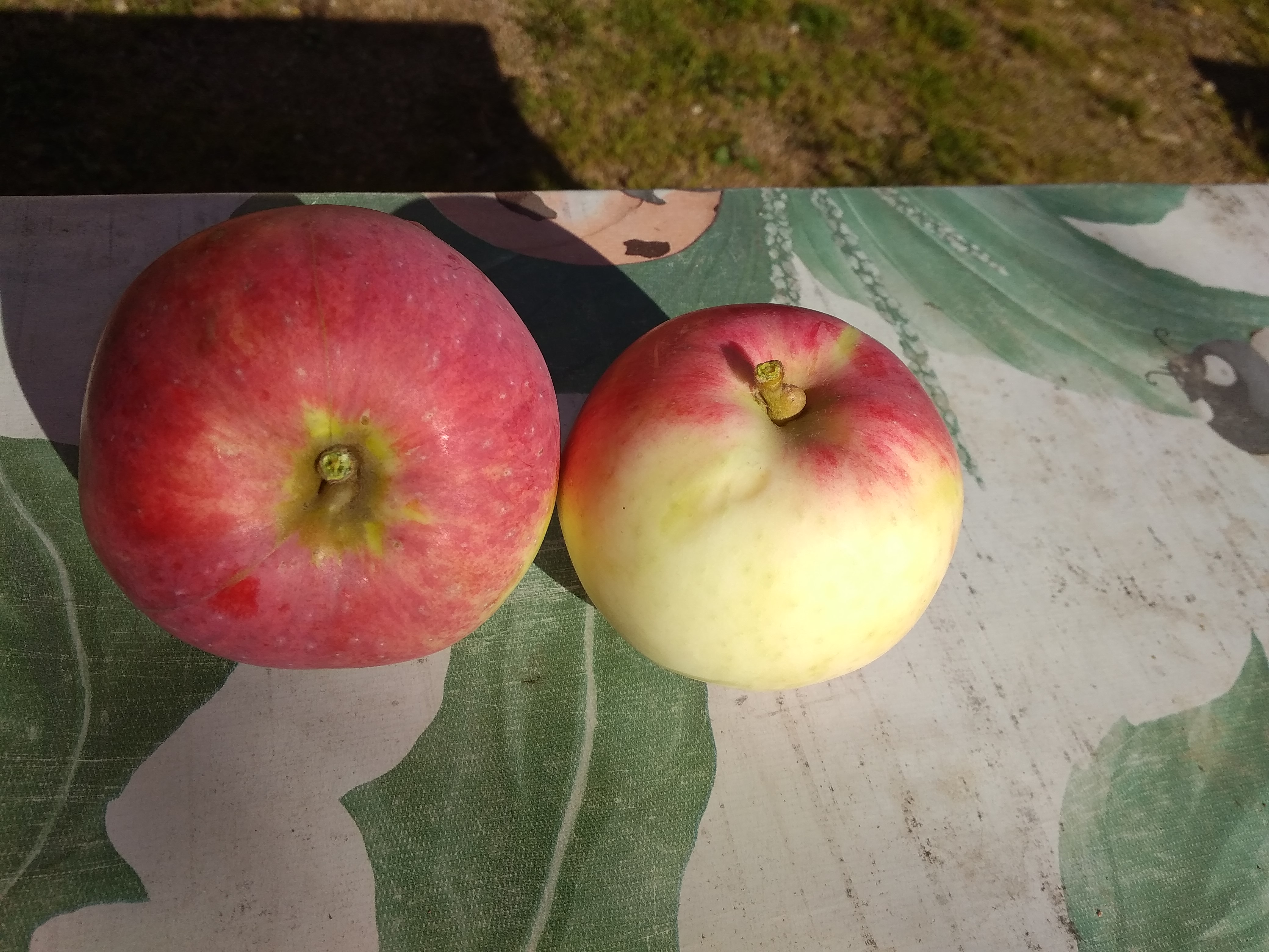 Уродилось 2 яблочка Подарок Графскому 2014 2х 54-118 РУМЯНЫЙ БОЧОК. Одно свалилось другое снял. Оба имеют небольшие повреждения и храниться не будут. Общий вес 375г. Дать на пробу?