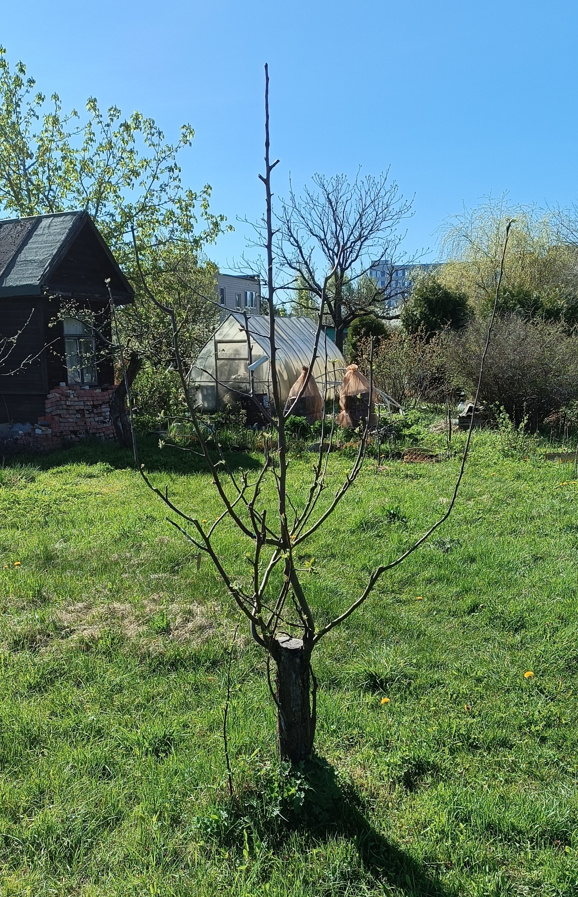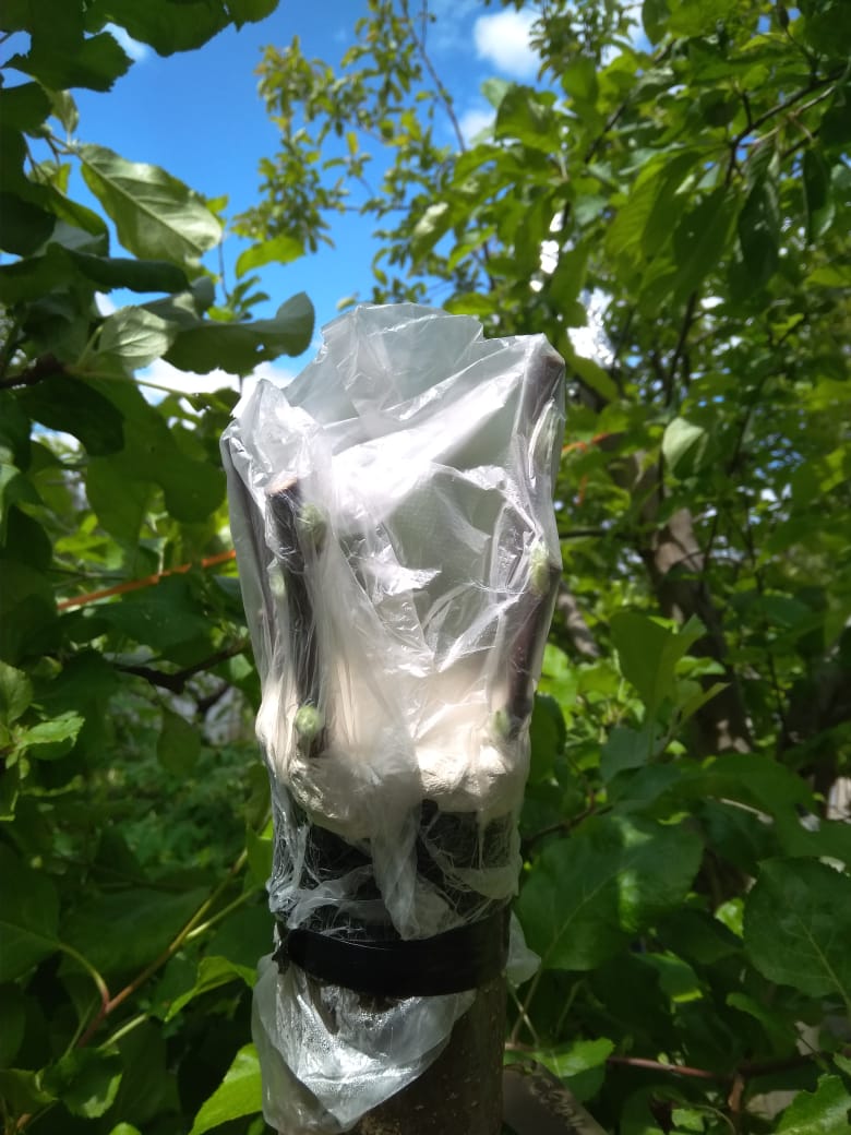 Минусы: очень слабое закрепление прививок, ветром 2шт выломало, необходимо доп.крепление. Такие большие срезы, мне кажется, не затянутся никогда.