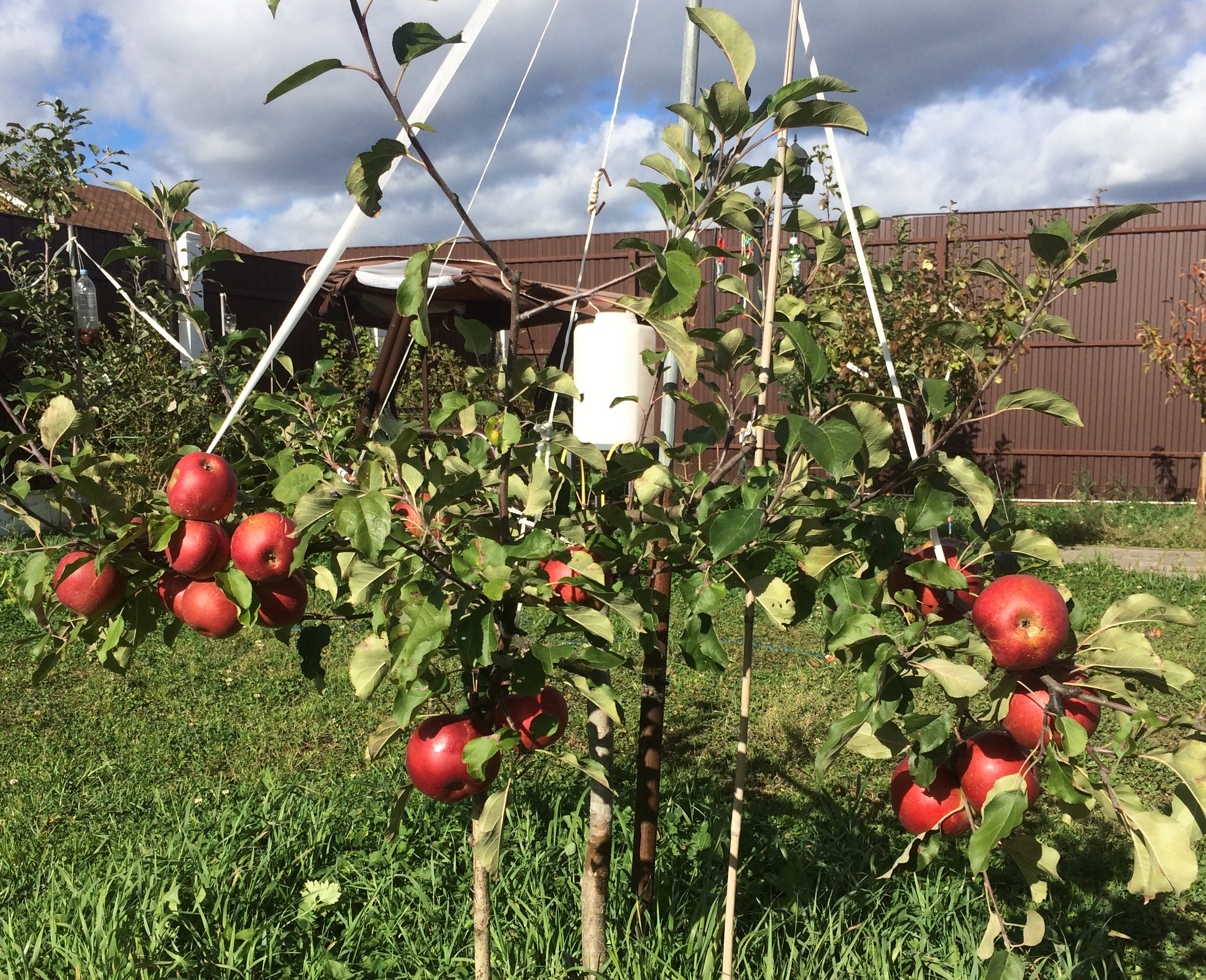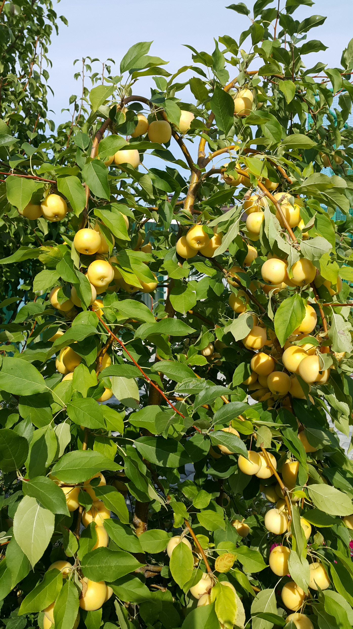 На дереве до сих пор полно плодов,сильнорослое,метловидная крона с мощными прямыми ветвями,на которых гирляндами яблоки.Плодожорка пользует с удовольствием.