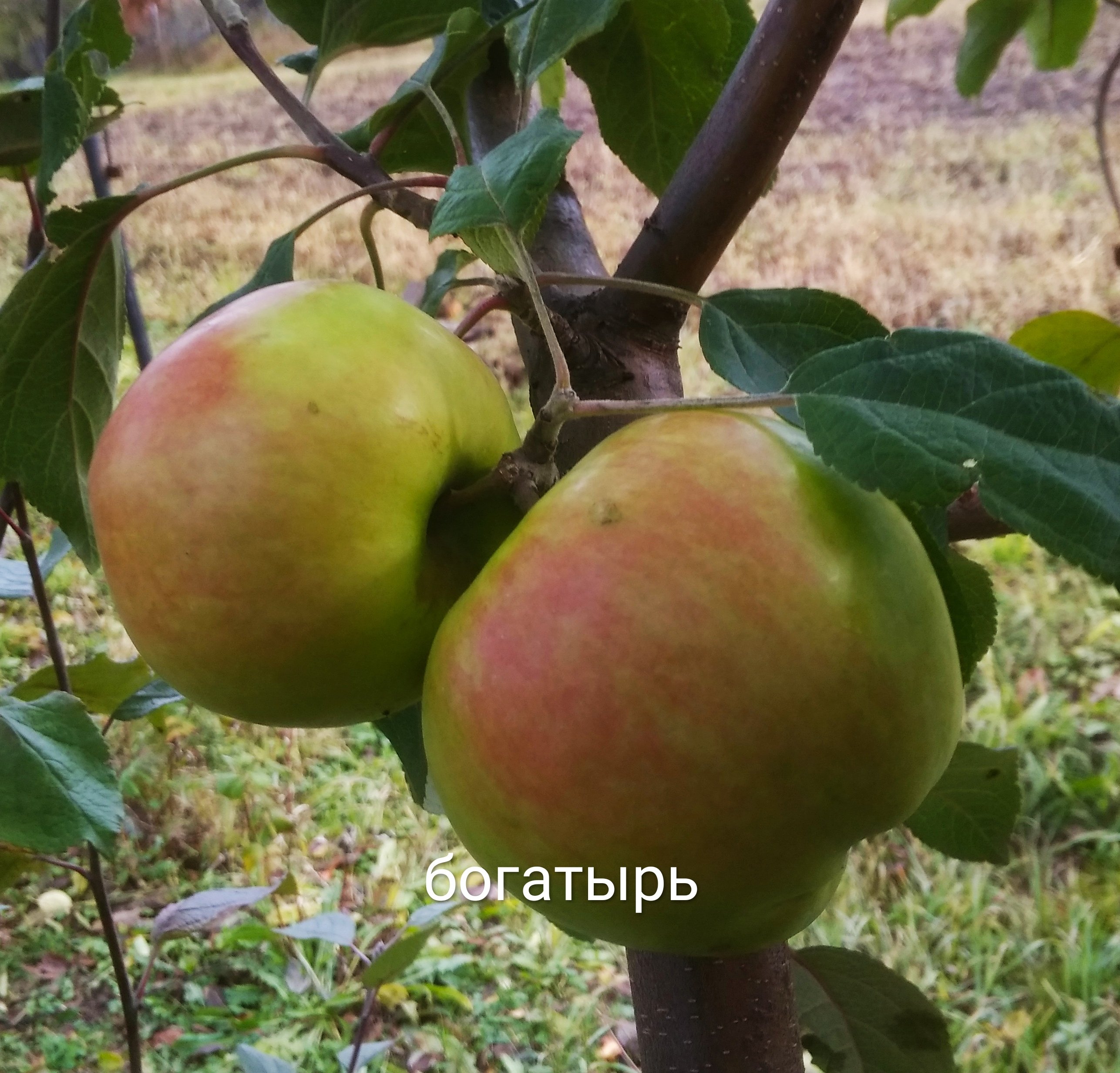 1. Старое с советских времен. Осеннее. Созревает с конца сентября. 2. Вроде б или Победа Черненко или Богатырь. Яблоки крупные. На солнце появляется румянец. До 13 см в диаметре. При съеме практически пресные. При хранении набирают сладость.