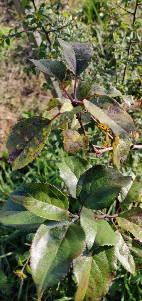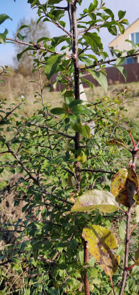 Китайка Керр на сеянцевом подвое, агроном сказал что сеянец антоновки. Визуально никаким боком к антоновке. Больше похоже на зеленолистый клоновый из серии 54-118. Вымахал за сезон из коневой шейки, сравнялся с 5-ти летней китайкой Керр, кора побега желтовато-красноватая. Листья без красных прожилок, изумрудно-зеленые, мелкие как у барбариса, на конце ЦП укрупняются, полно боковых побегов под 90°, очень часто сидящие. У Керр листья уже желтоватые, опадают. У подвоя как в мае листва. Есть желание довести до плодоношения с целью более точной идентификации. Послежу за зимостойкостью. Что это может быть? Мутант антоновки опыленной хз чем?