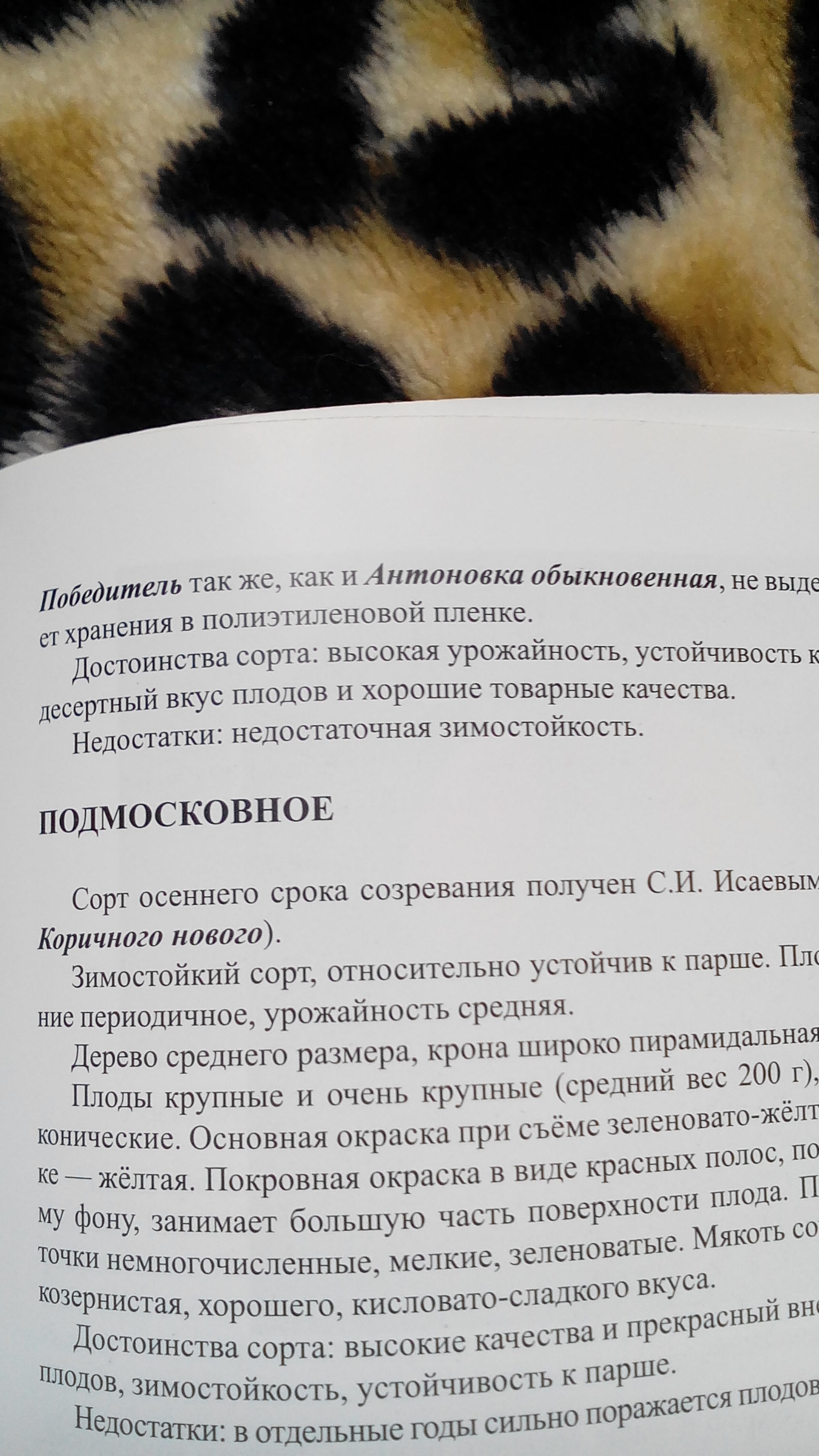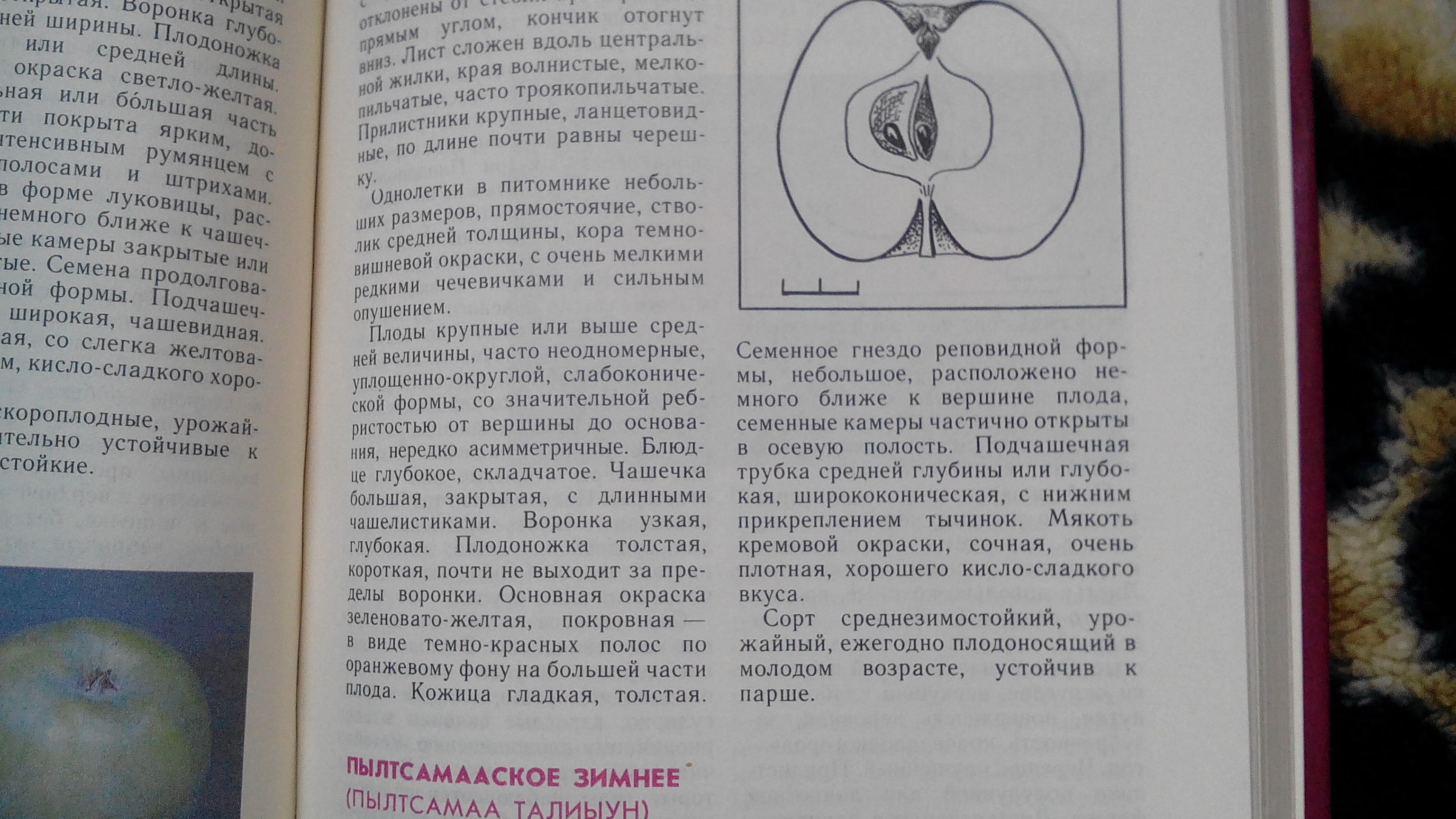 Сорт зимнего срока созревания. Районирован в Липецкой области, прижился в производственных насаждениях Брянской области. Крона округлая, густооблиственная. Сорт СРЕДНЕЙ ЗИМОСТОЙКОСТИ, скороплодный, плодоносит на 5-6-й год после посадки в сад, урожайный, периодичность слабая. Плоды и листья устойчивы к парше. (Выделено мной)