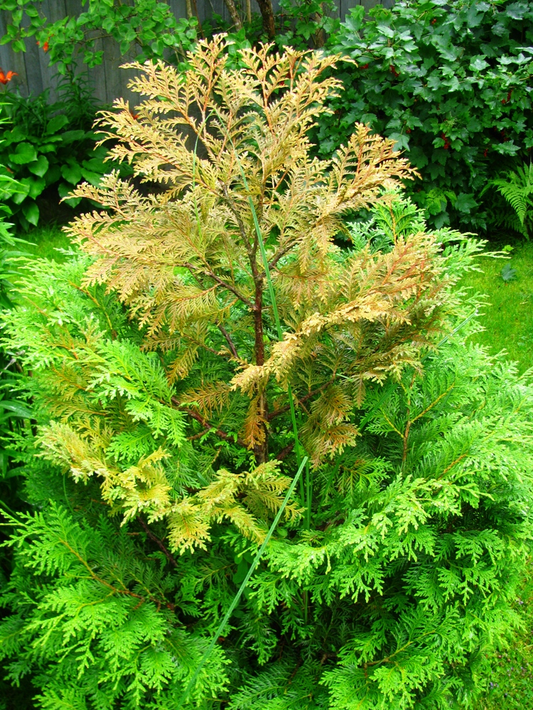 Не могла понять, почему туя цвет поменяла.