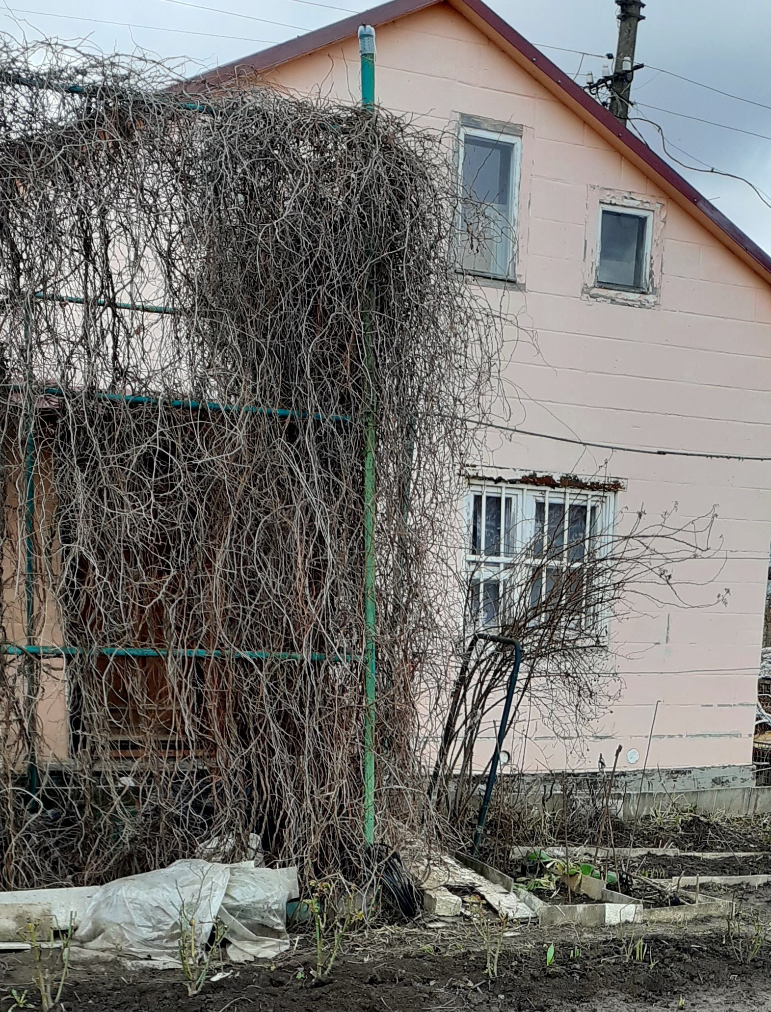 Осенью подняла доску между лимонником и желтым шиповником и чтобы взять посадочный материал - рубила саперной лопаткой