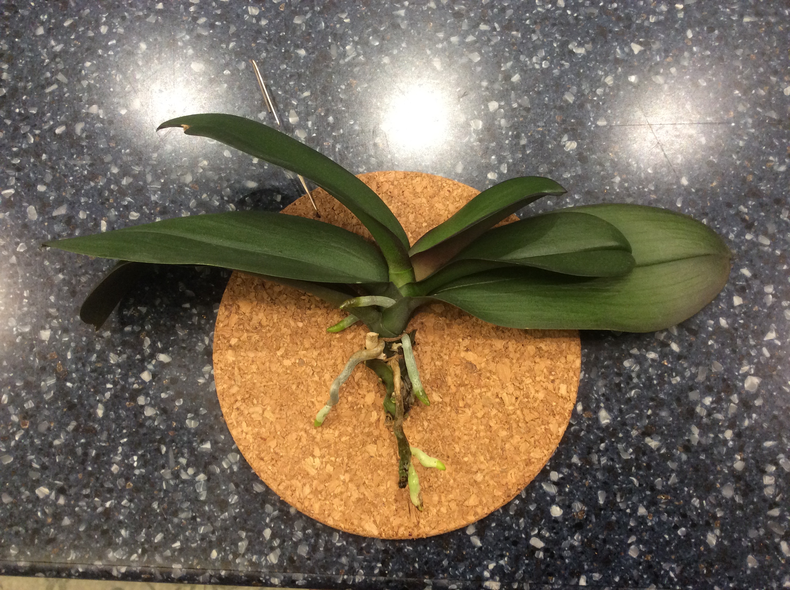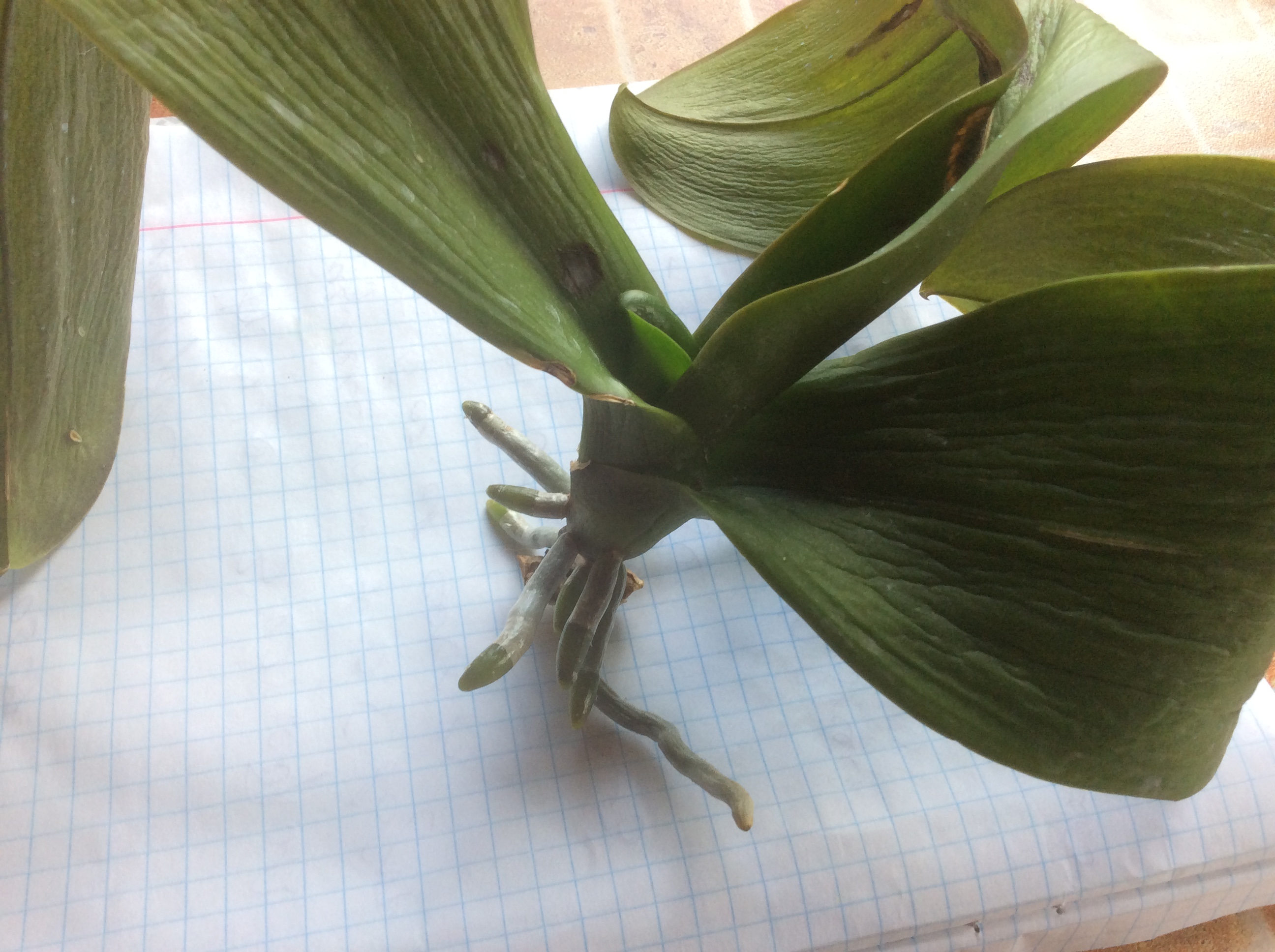 Срезала все гнилые и сухие корни. Остался огрызок с листьями без корней. За последние три месяца листья совсем завяли, но полезли здоровые корни и из точки роста выглянул хороший свежий лист. Похоже, хозяйка того форума права, мы про орхидеи многого не понимаем.