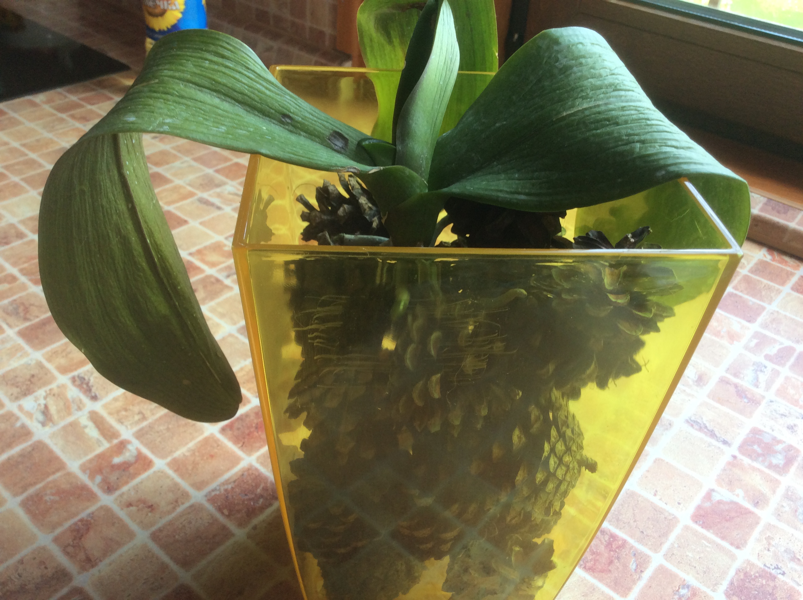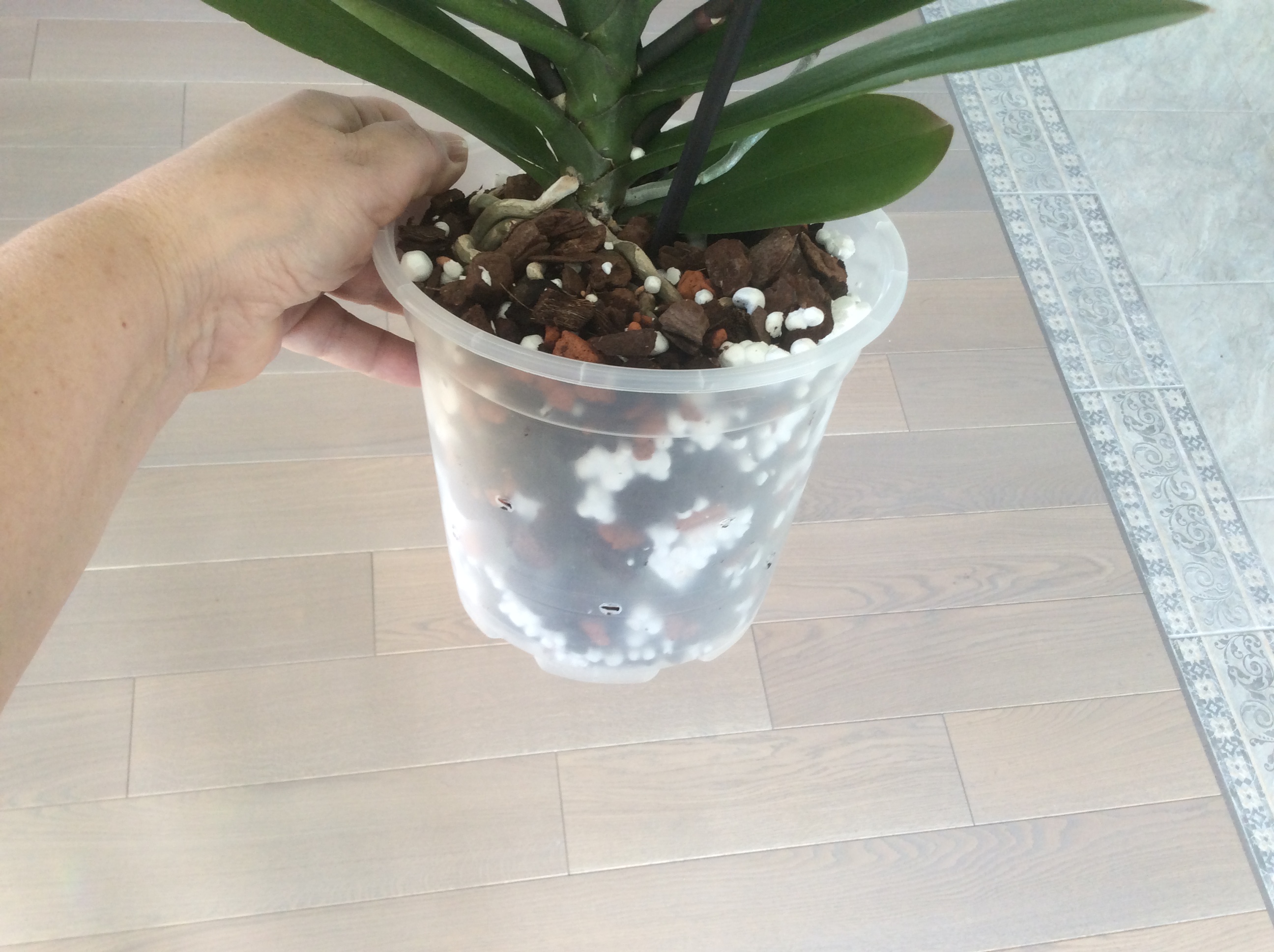 Мне кажется (повторюсь, я не специалист в выращивании орхидей), что грунт, в который вы пересадили свой фаленопсис, ему не подходит. Я покупала грунты для орхидей двух разных производителей и мне эти грунты совершенно не понравились! Поэтому я и решилась на эксперимент с посадкой в высокую вазу.