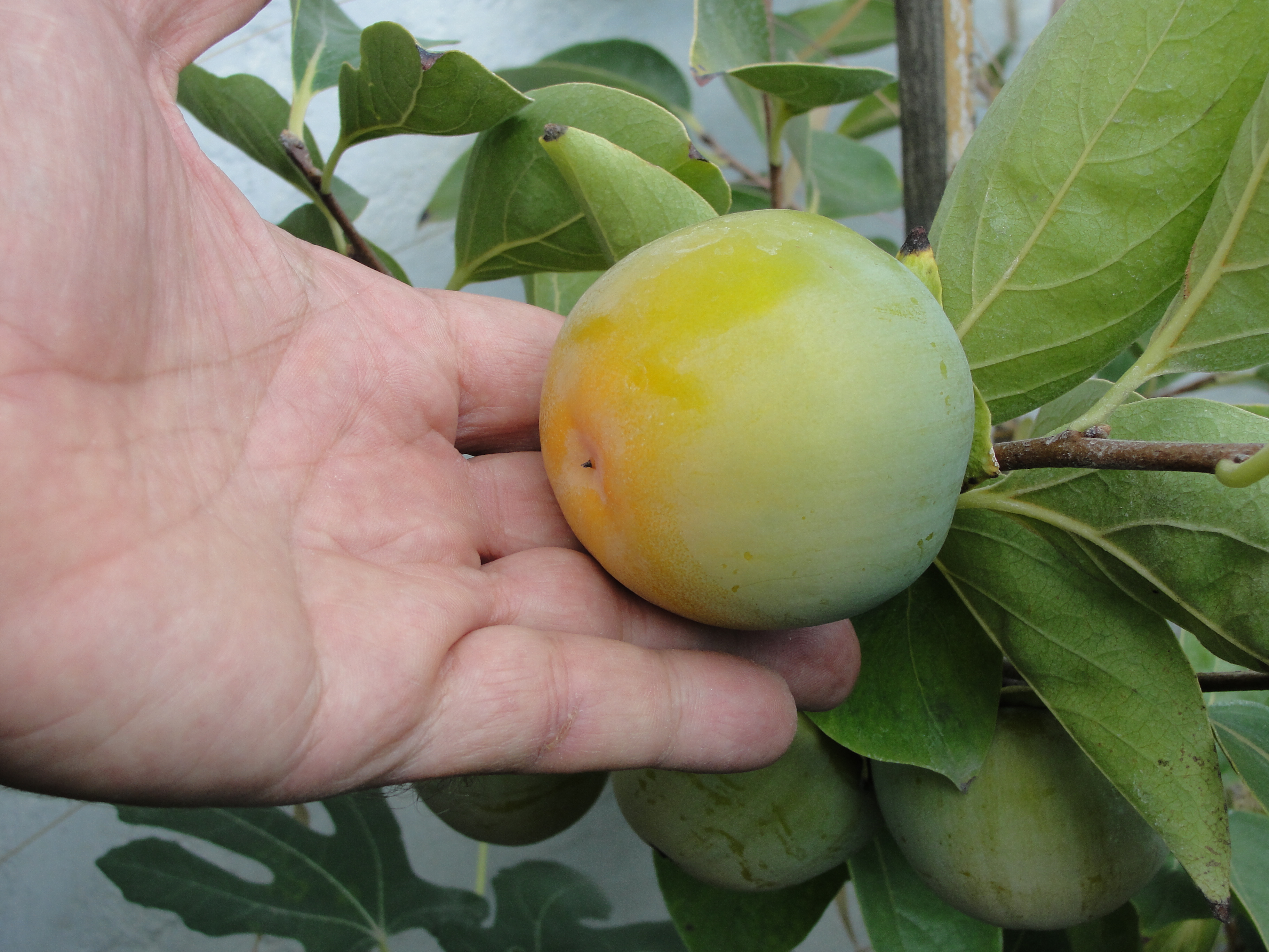 Хурма зреет ...только намёк на окрашивание , позже идёт созревание по сравнению с прошлым сезоном . Сеянцы Белогорья ( в теплице ) неплохой урожай намечается , обработки "Завязью " по цветам дают прибавку ...осыпание было минимальным .