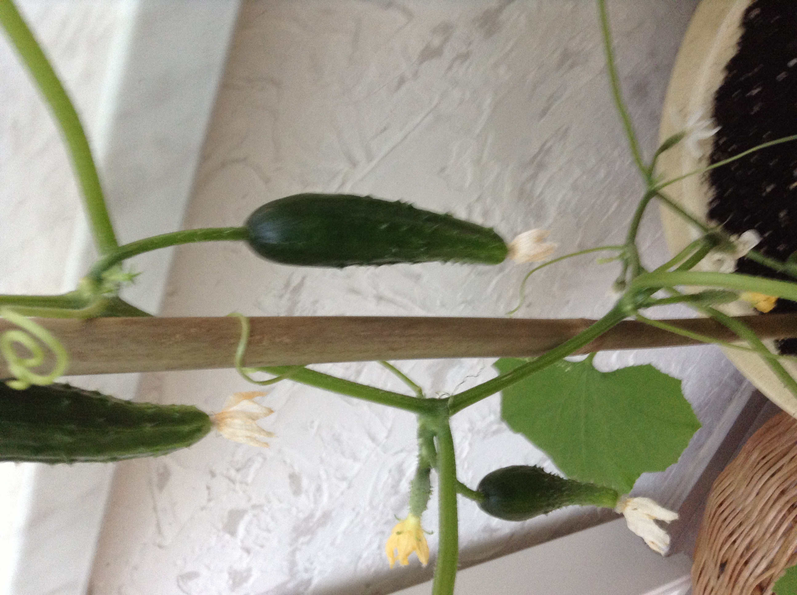 Мне очень понравился огурец "Балконный хрустик". Посадила в горшочек на подоконник три недели назад, сегодня уже цветут завязи. Растение не имеет боковых плетей, пока только основной, под каждым листом - одна завязь. Все цветки женского типа. Листья умеренного размера. Хорошо переносит пасмурную погоду, совершенно не вытягивается. Хотелось получить свежие овощи, не дожидаясь массовой посадки, похоже с этим сортом это удастся. Еще для сравнения посадила огурец "Балконный". У него листья еще мельче, под каждым по нескольку завязей, но они мельче. Все цветки женского типа. Сегодня зацвел первый. Плетистый. Много боковых плетей. И третий огурец - "Зозуля", но он еще только на пятый лист пошел, хотя сажала все сорта в одно время. Буду испытывать дальше.