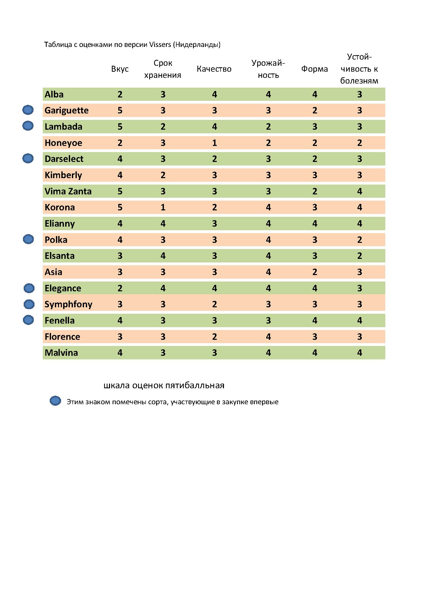 Дмитрий, спасибо за таблицу.Еще подскажите, сорт yamaska, в таблице. Он в закупке есть, как -то по другому называется?Alemao писал(а):Таблица с оценками от другого источника (Нидерланды)