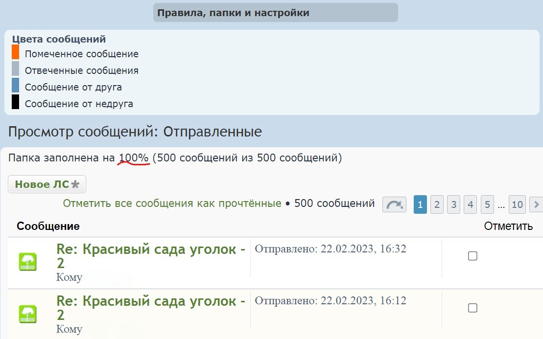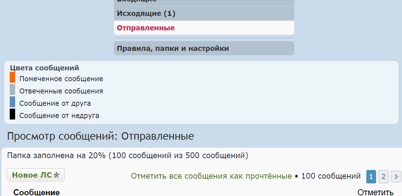 Татьяна, заходите в личные сообщения. Механизм одинаковый, что в папке Входящие, что в Отправленные.