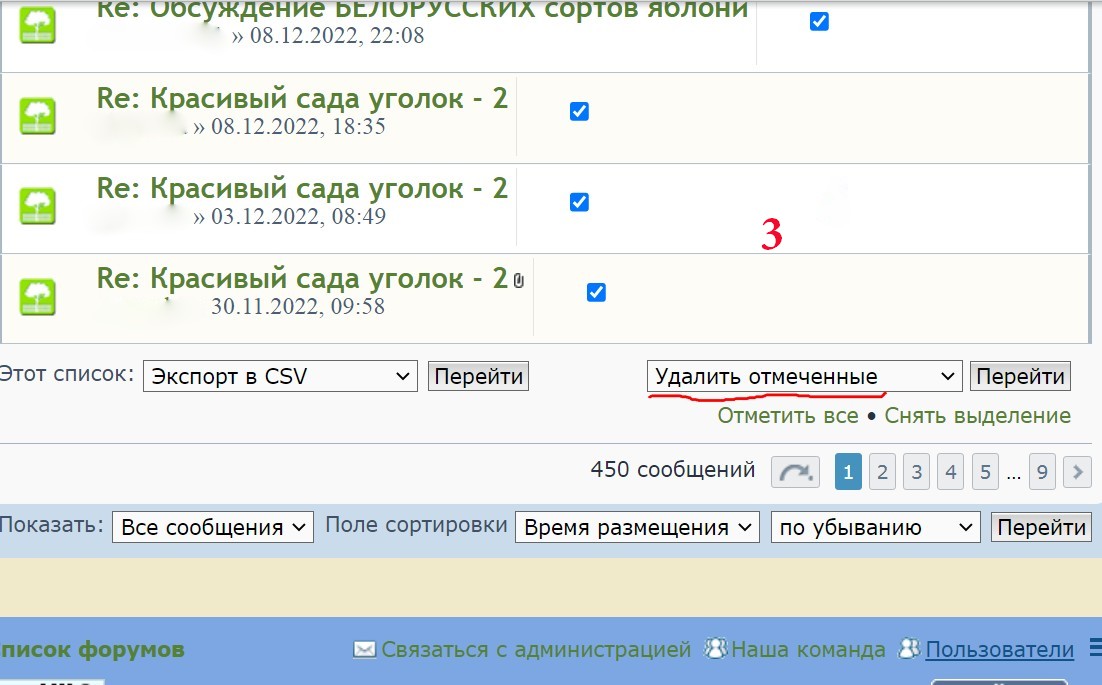 1. Выделяете галочками сообщения, которые хотите удалить