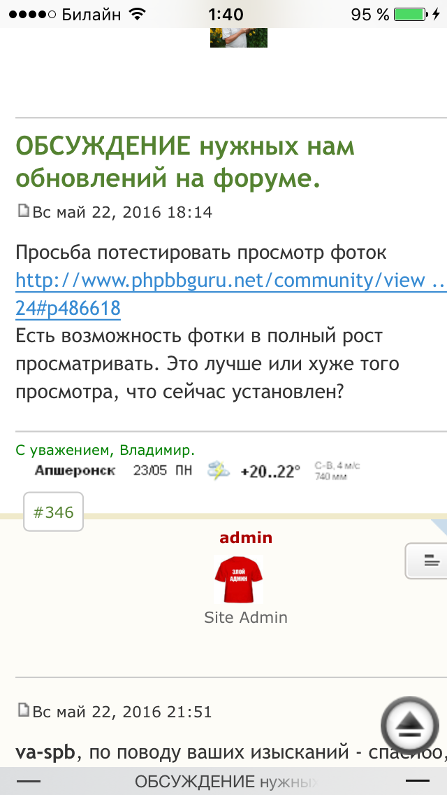 Прошу вернуть возможность в погодной теме вставлять фото http://forum.prihoz.ru/viewtopic.php?f=11&t=7257