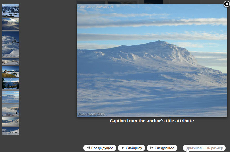Его можно настраивать. Попробуйте здесь посмотреть какие могут быть варианты http://highslide.com/editor/