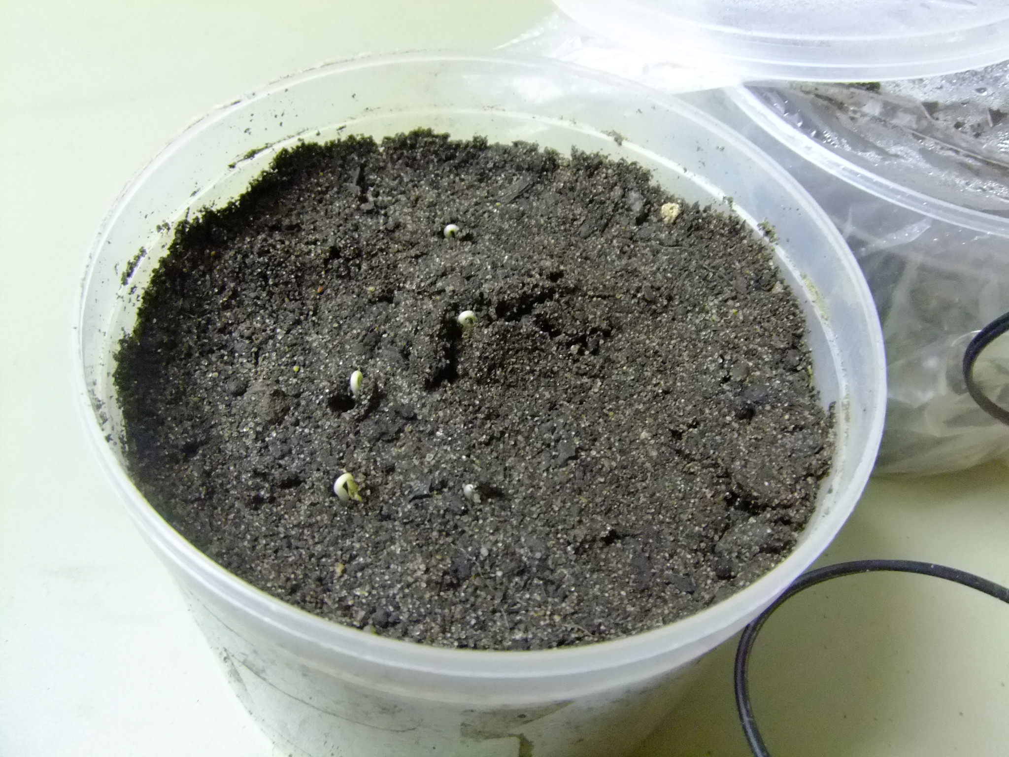 , а вот те которыми хвастался , им сейчас 4,5суток с посева : Всходы и вспучивание земли вышли хорошо , но грунт на фото вышел не натуральным , как бетон