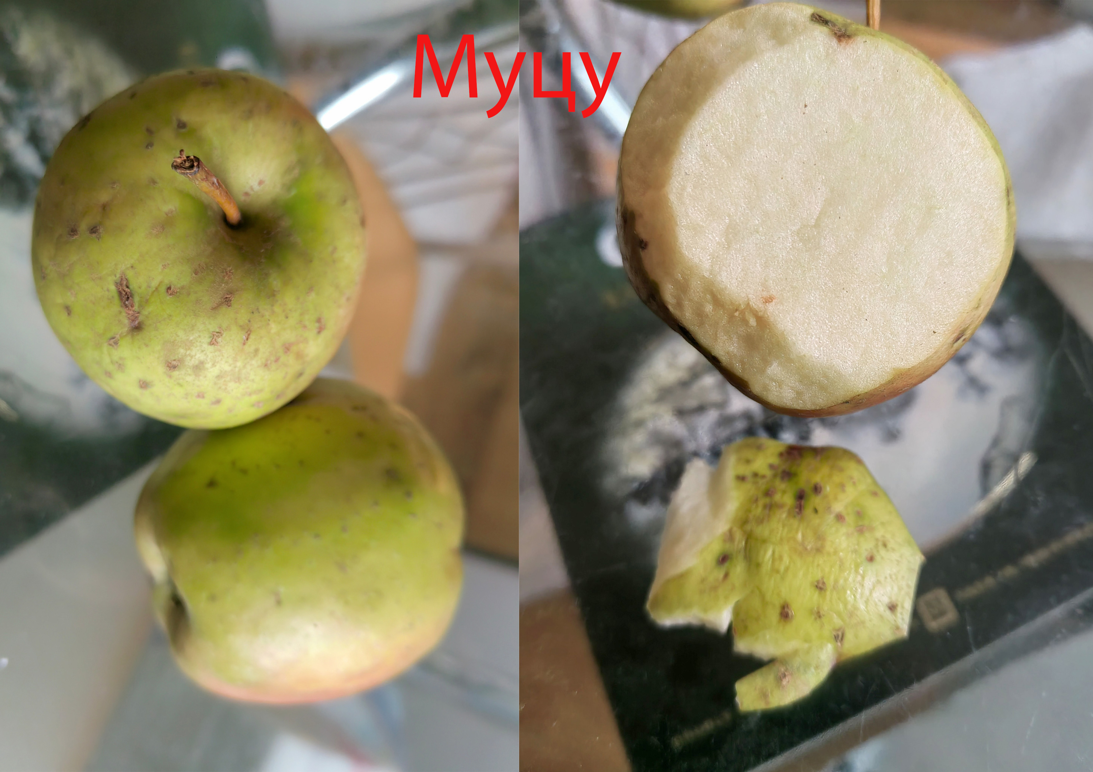 Что такое ГГ я прекрасно знаю. Летом ГЯ выглядит как на фото на очень крупных плодах, затем зимой проявляется ещё больше. Это всё яблоки из одного ряда на 54-118 который постоянно сильно обрезается и руки не доходят его выкорчевать. В принципе такая комбинация имеет место быть т.к. деревья на 54-118 урожайные но требуют сортировки и сильной обрезки.