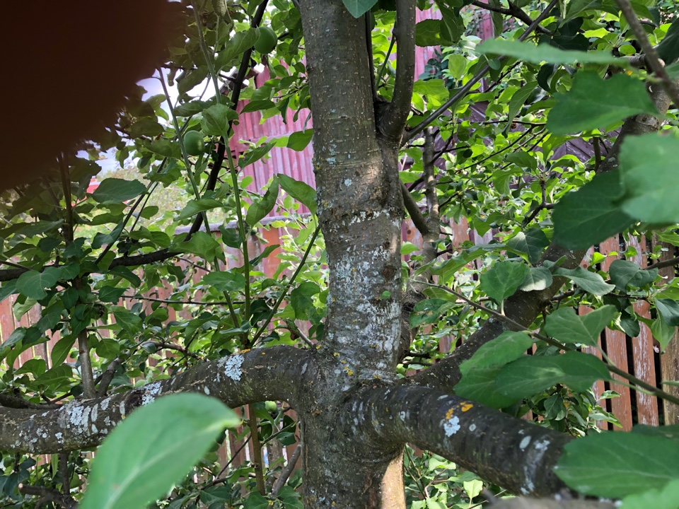 Вот сегоднешнее фото . Правой верхушки практически нет Левая заняла весь ствол. Место прививки цепочка поперечных белых точек на стволе. Это Имант на Имрусе.