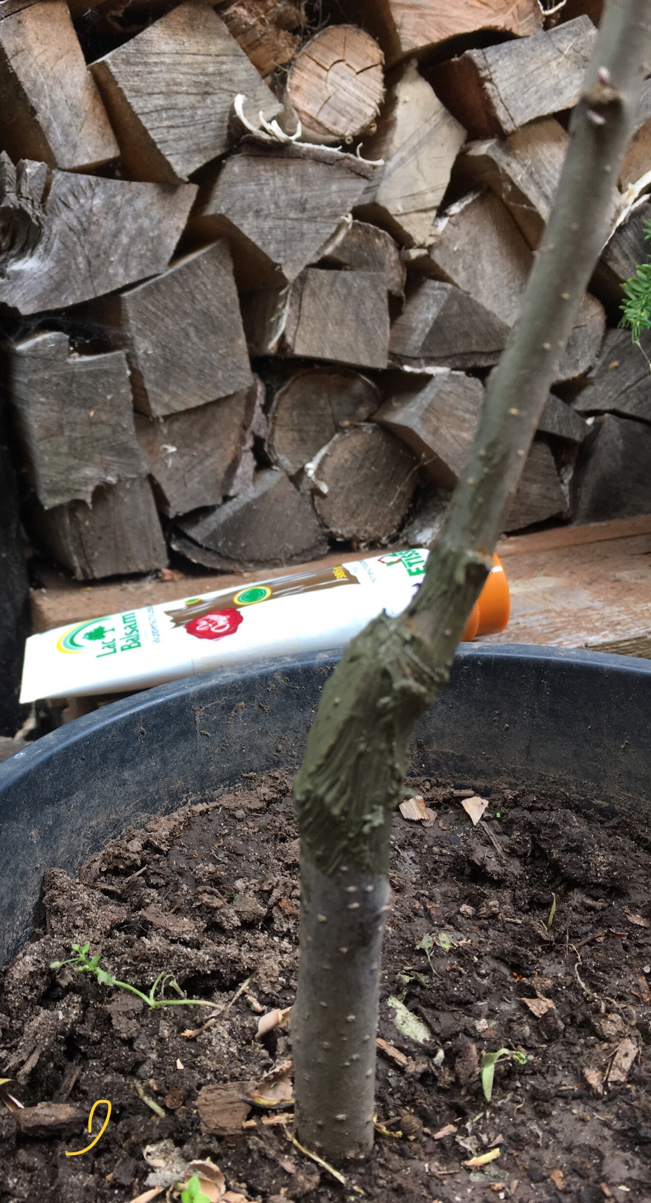 . Осенью купила, совсем молодая яблонька, в прикопе зимовала, сейчас в горшке ждёт посадки на постоянное место.