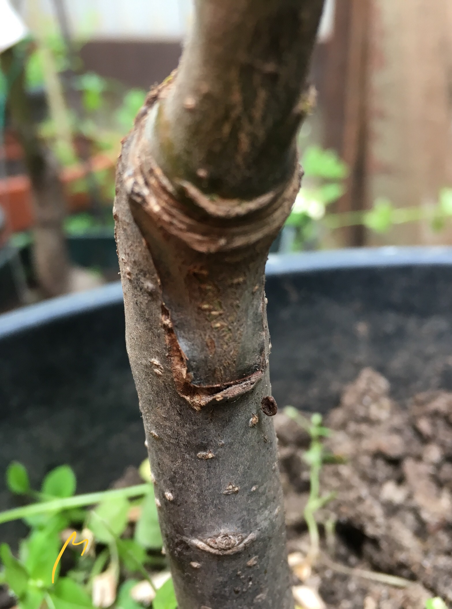 Прошу совета. С этой прививкой все нормально? Сухой пенёк подвоя и вся левая сухая часть не слишком низко опустилась? Что-то нужно сделать сейчас? Отрезать-замазать или не трогать, само справится?