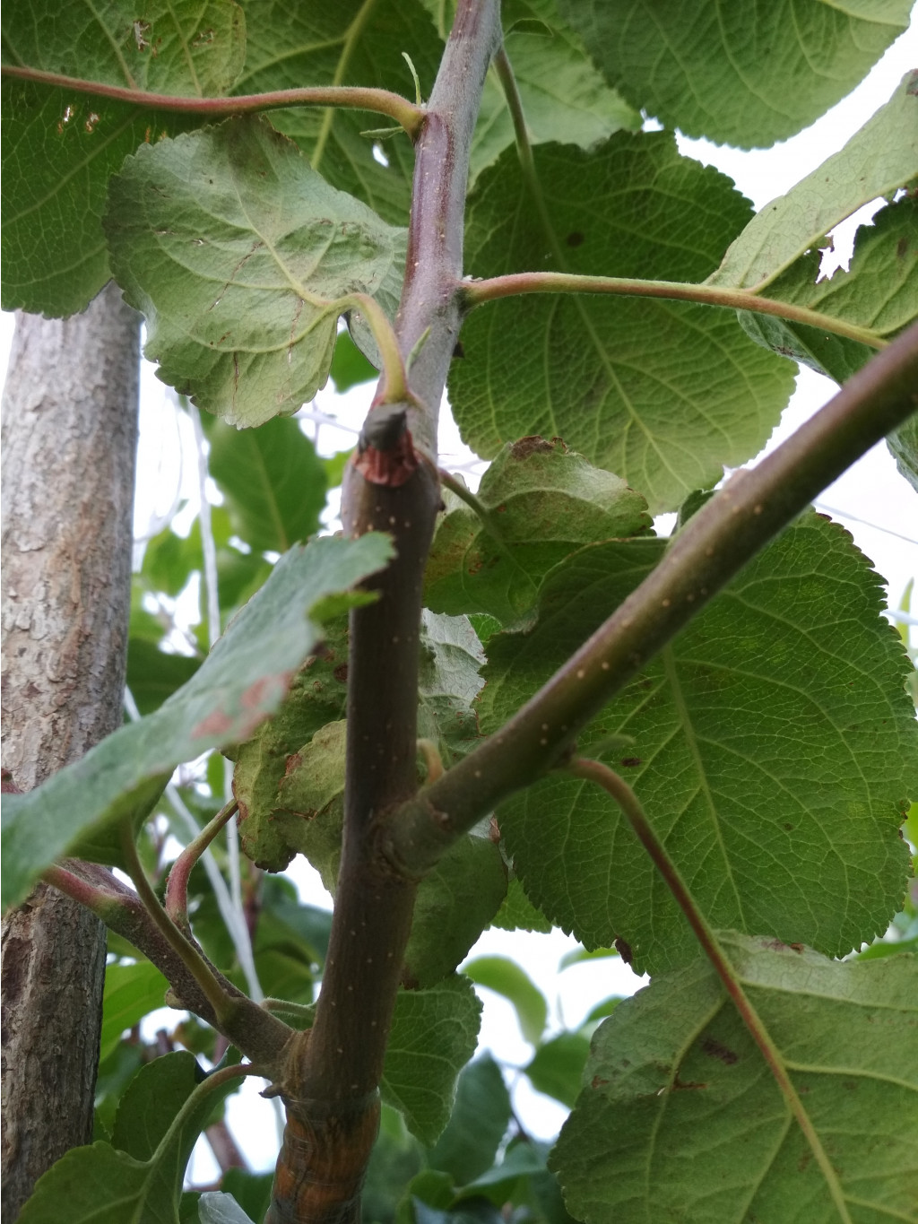 Наблюдаю аналогичное отмирание древесины на молоденькой мельбе подмерзшей зимой 16-17 года и подхватившей какой-то из грибов в 17 году, в этом году она даже очень приличный прирост дала, но эта гадость все ещё живёт в ней. Имхо подвой заражен.