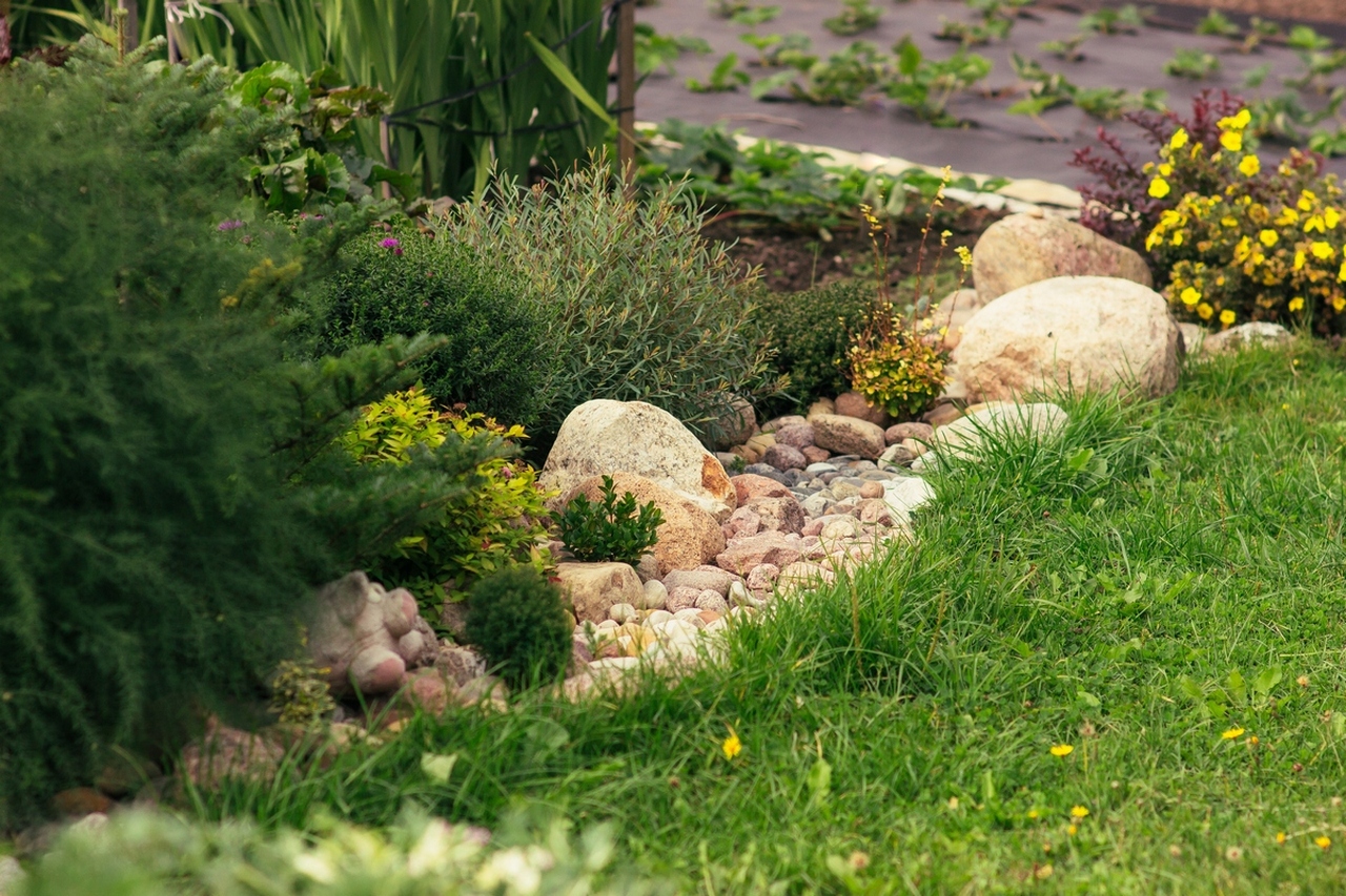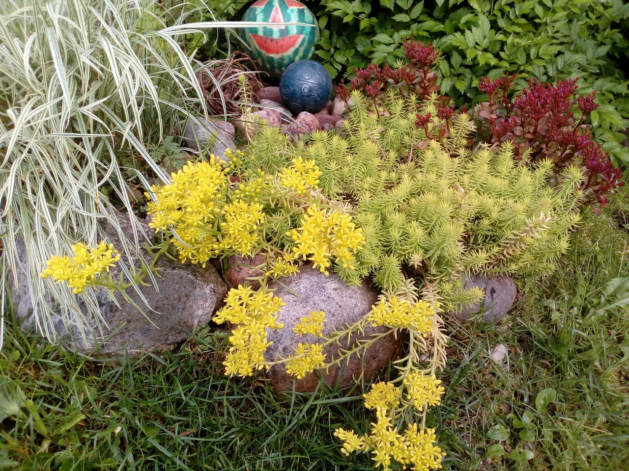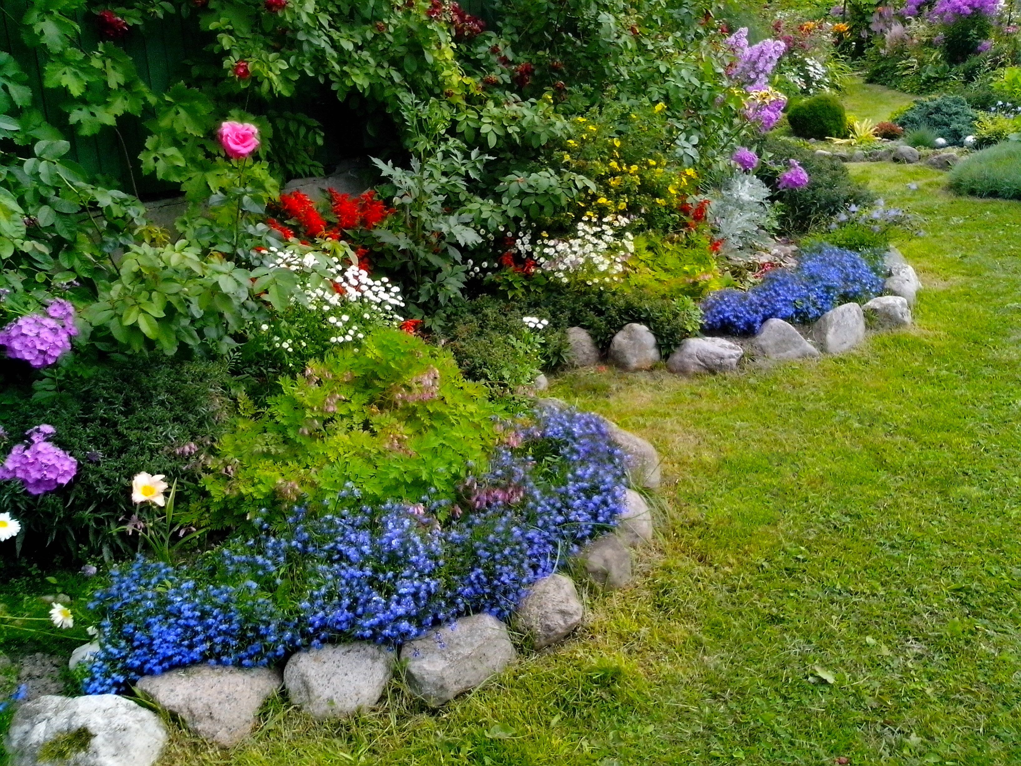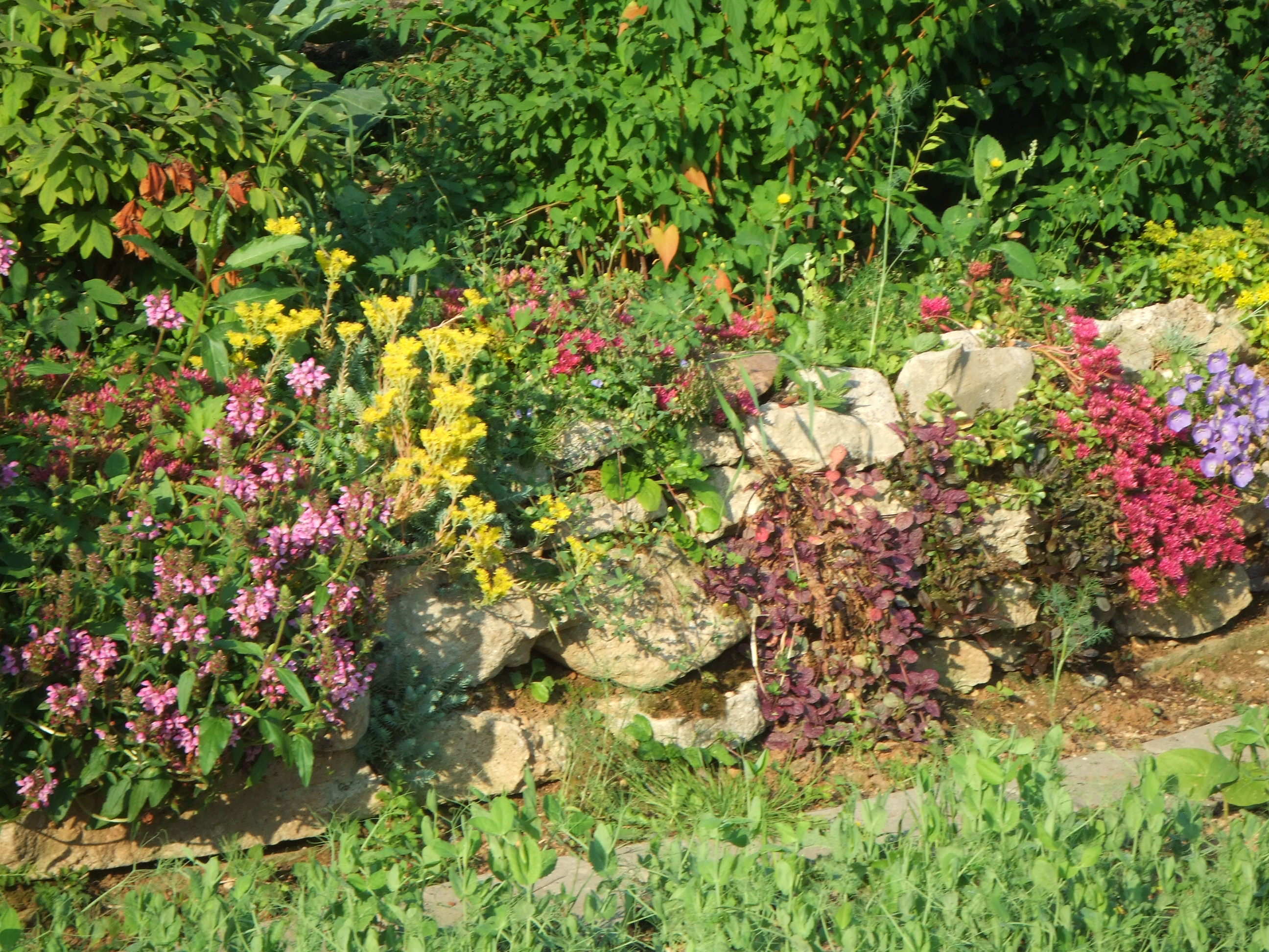 А камни у меня используются много где, как рекомендуют ландшафтники - и в пруду, и в рокарии, и в роли каменной гряды. Много где идёт подсыпка из мелких камней.