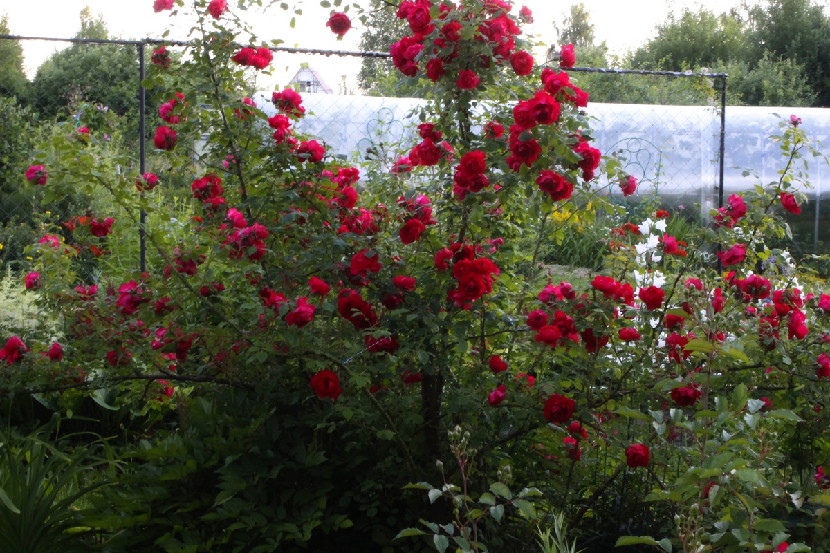 Мариночка, в том то и дело, что и Симпатия и Антик на плетистые совсем не тянут, скорее я бы их именно шрабами и назвала. Я их привязываю за ствол в самом низу к опоре и всё. Колышек высотой около метра. Могу связать ближе... Спасибо, что растолковала про обрезку. Буду просто теснее связывать, чтобы цветы были в кучке. Смущает, что она дылдина... может, к ней подсадить что-то высокое, чтобы она не одна возвышалась... Вот колокольчик белый рядом растёт - он высокий. Может, и обсадить вокруг этим колокольчиком? Будет красное в венке из белого... Буду думать... или обрезать нужно так, чтобы не видно было голых ног. Там уже много стволов. По центру не трогать, а крайние немного почикать...