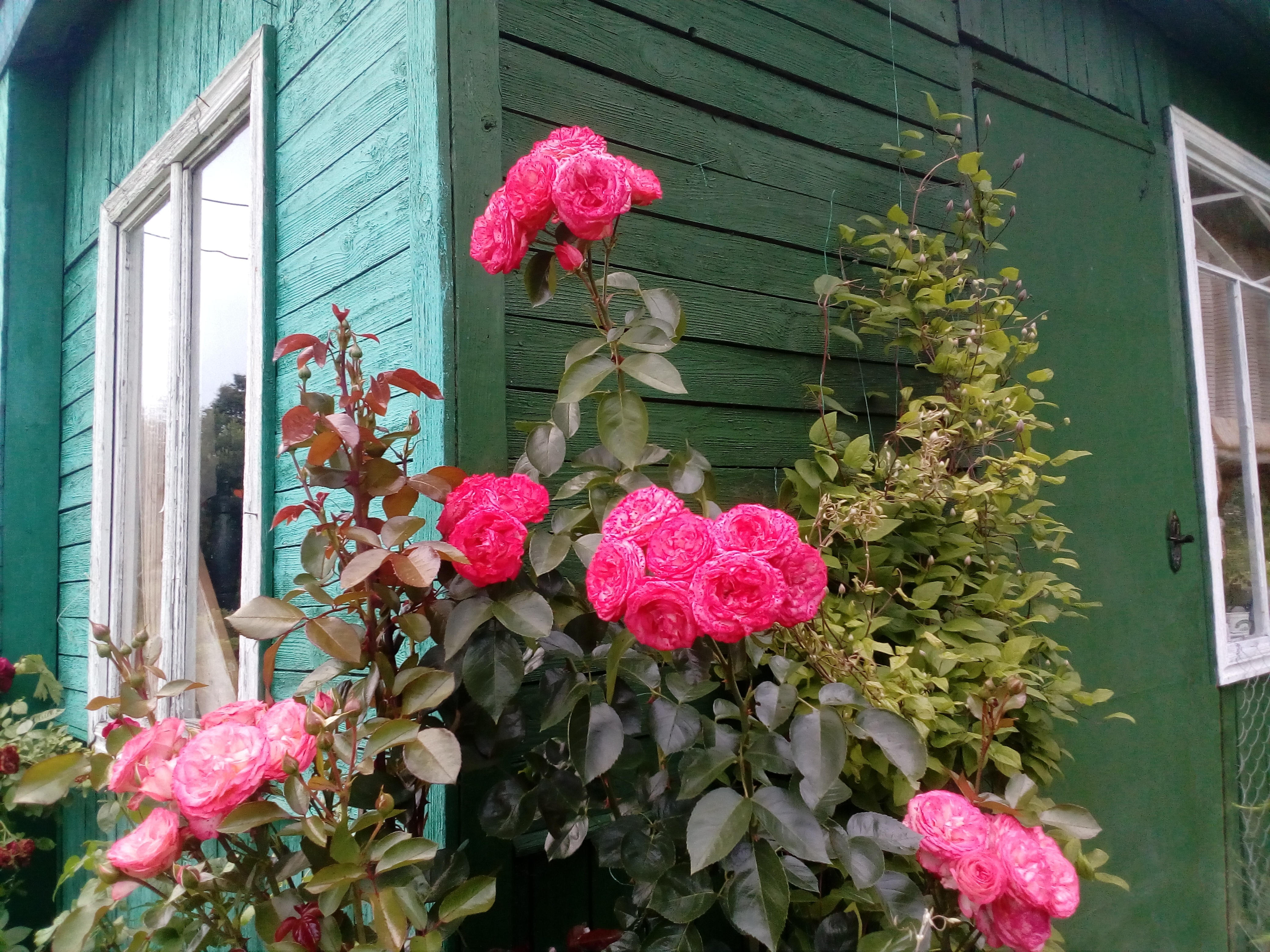 Симпатию хорошо бы пересадить к забору, да нет его у меня... Только живая изгородь с трёх сторон... Есть старый сарай, который уберётся, когда установлю ворота на гараж. Сейчас сарае с юга клемик обитает и виноград с востока. Так что опора в виде стены отсутствует. Если бы была стена, я бы посадила виноград к ней, а то десертные сорта хорошо растут у меня только в теплице и у дома, да и то его там душат розы.