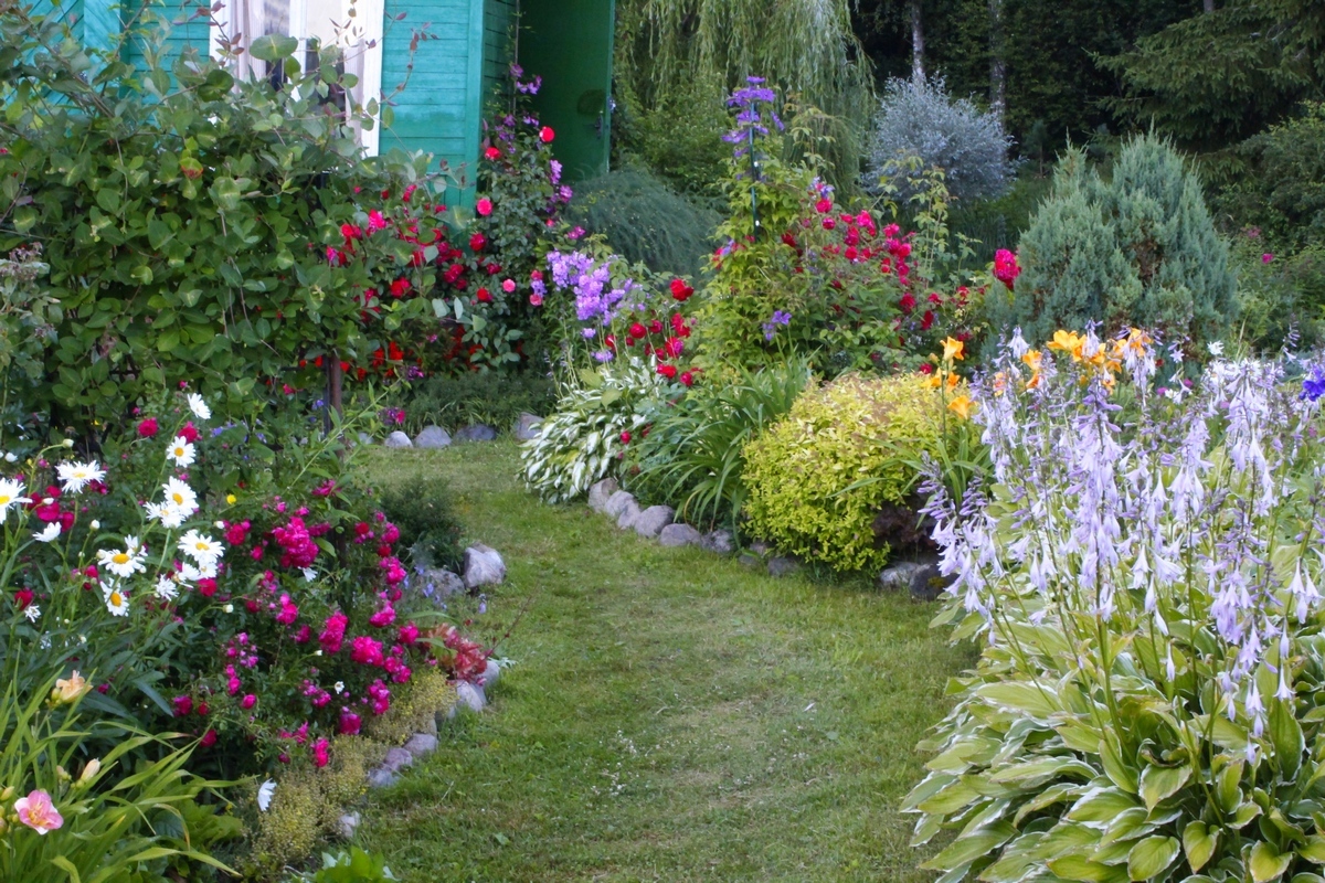 Розы, петунии, хризантемы, георгины, хосты, астры, гладиолусы, лилии, клематисы и др.