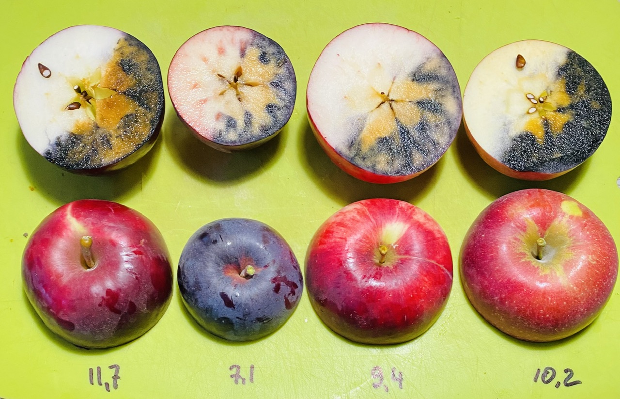 Что касается Дыямента, у меня деревом его нет, но много прививок на разных деревьях на разной высоте от 50 см до 2.5 метров. Цвели все, на двух нижних ветках 2 деревьях завязей нет, на остальных есть. На одном дереве плоды есть везде и на нижней ветке. И у меня зимой холоднее чем у Дмитрия, а весной заморозков больше и они сильнее. В моих условиях это не мерзлявый сорт.