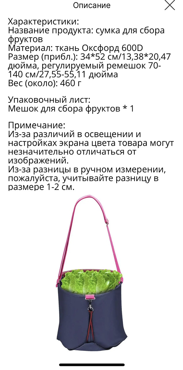 До сбора урожая ещё далеко, но ящики заготавливаю и приобрёл сумку для сбора, довольно удобная, хотел ещё одну купить, но месяц назад была по 1200 р на Али, сейчас -1800 р с доставкой. Видимо, к сезону повышают.