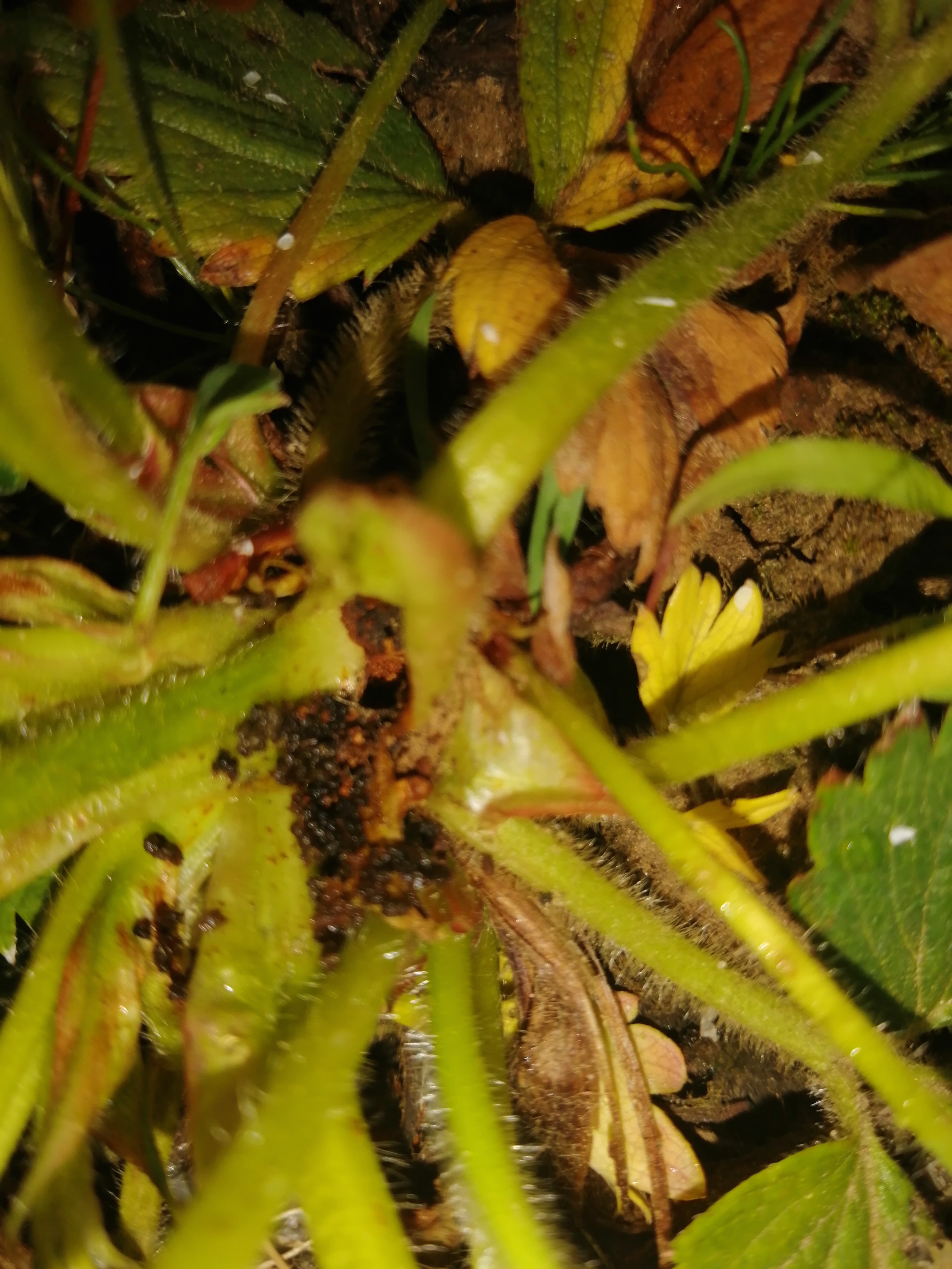 Не одно так другое, вчера прошлась по землянике, встретились 2 куста подвядших, например куст несколько рожков один из них завял вместе с завязью ягод, подергала за него сюрприз.... Гусеница. Поже на совку.