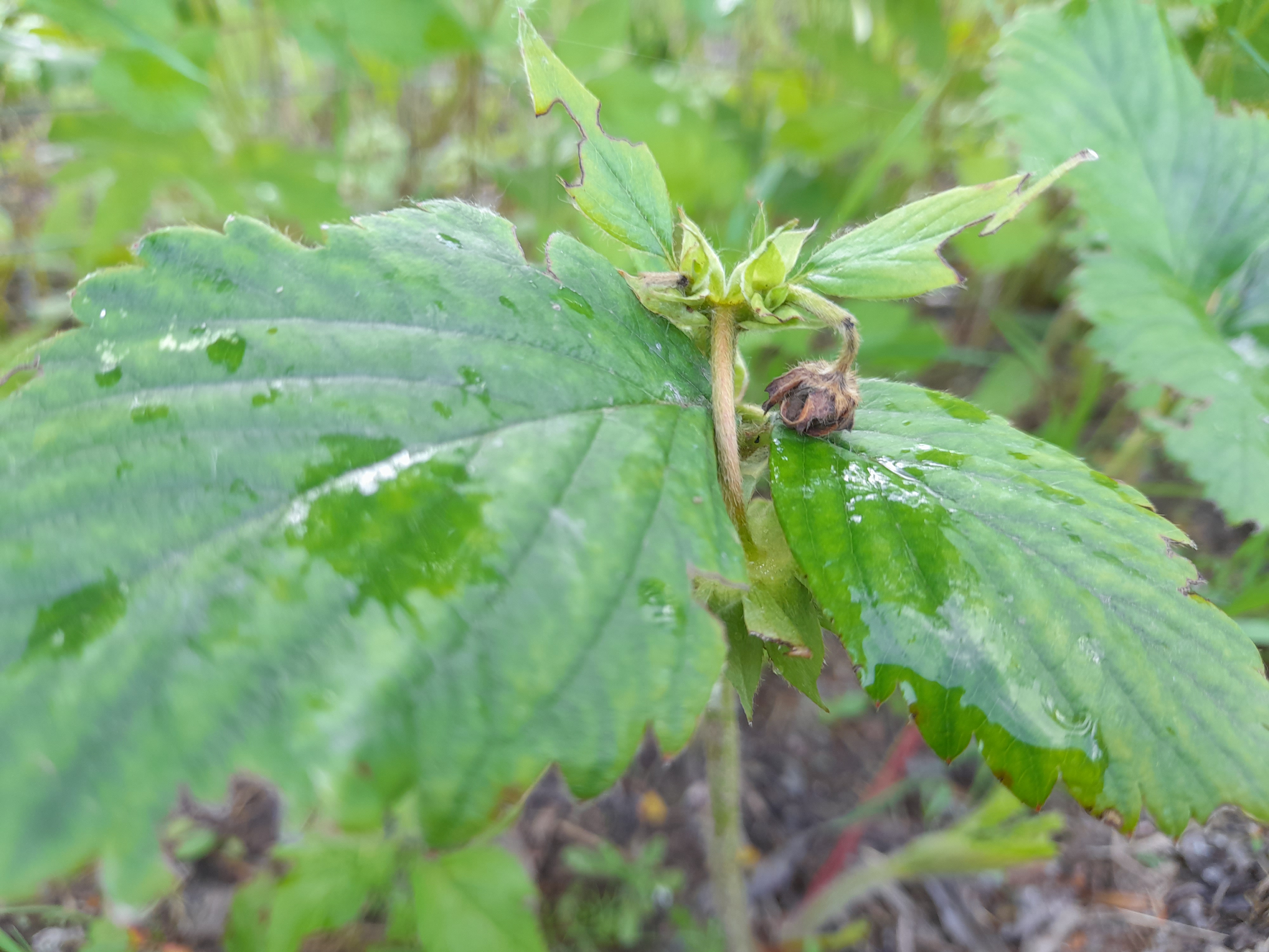 Пару дней назад была на полевом участке, где посажена клубника. Первые цветы как только стали выходить из земли, разворачивала руками ещё до роспускания и они были с чёрной серединкой. Не укрывные были. Думала все померзло и будем без ягод. Но с приходом тепла цветонос выдвинулись над кустами, цветочки стали раскрываться и чёрная серединка только 1 или 2 на весь цветонос, остальные нормальные.