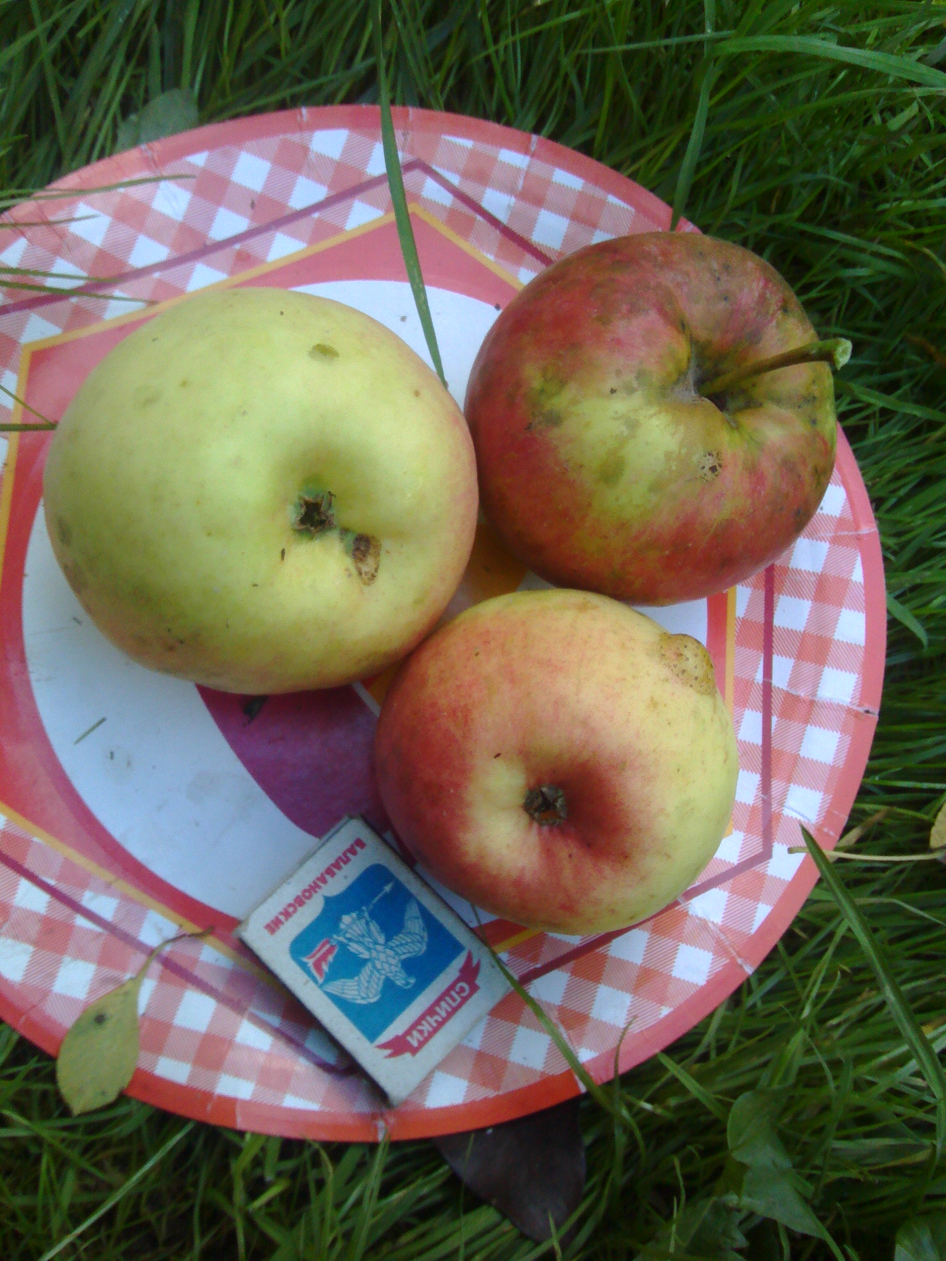это мои на позавчера.http://forum.prihoz.ru/viewtopic.php?t=7245&start=105 здесь ошибочно прозывался Северным синапом.На второй прививке плоды с более короткими плодоножками и более приплюснутые.Вкус и окрас одинаковы.