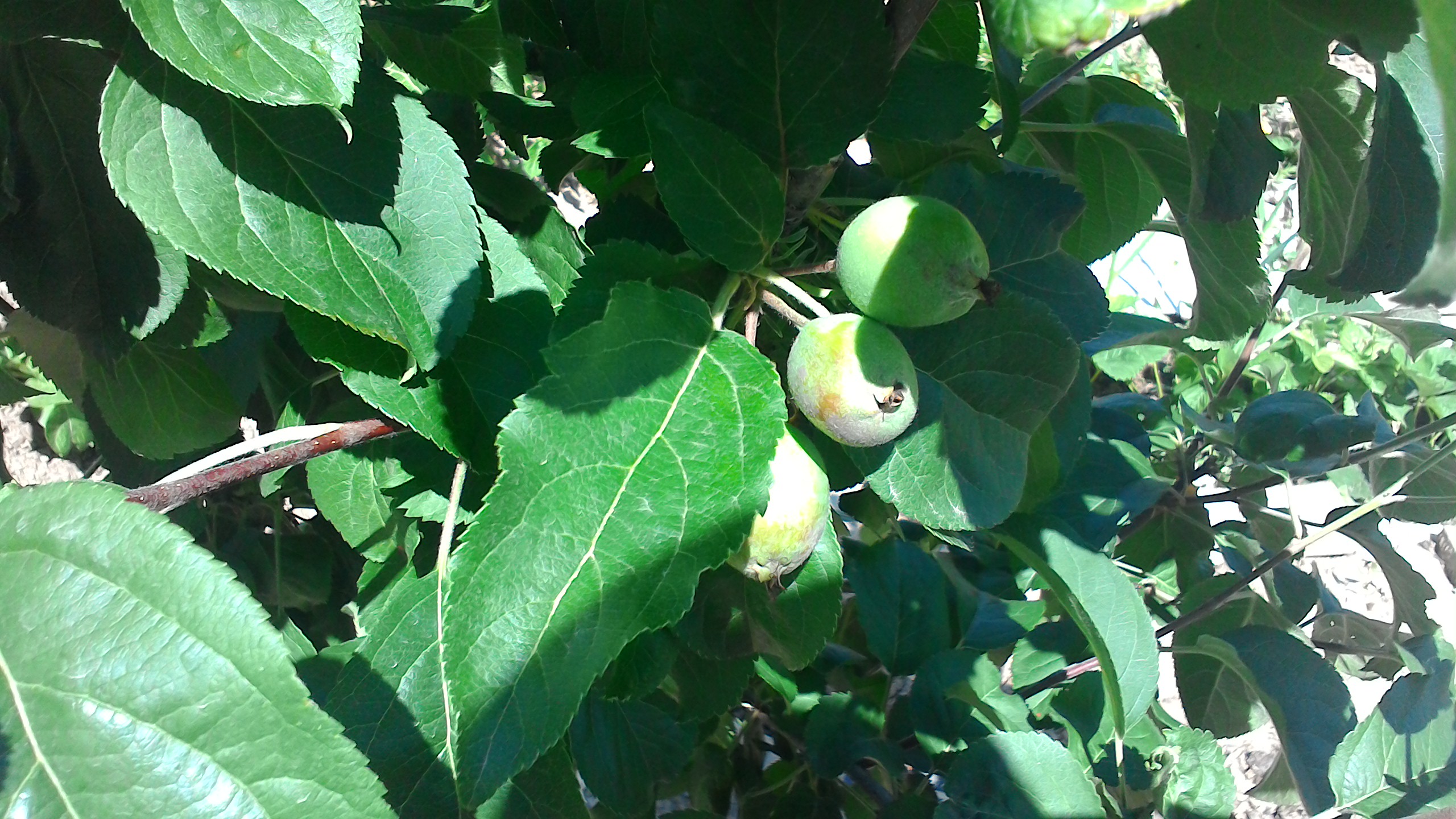 Одно из моих фото,с завязью,датируется июнем месяцем 2016.Лист также ядрёный.Обобщая всё приведённое,можно сказать об изменчивости плодов СО от сезона к сезону.И не только по форме, окрасу,длине плодоножки,плотности мякоти и вкусу.С другой стороны,на этом дереве привито под десяток сортов позднеосеннего и зимнего срока.