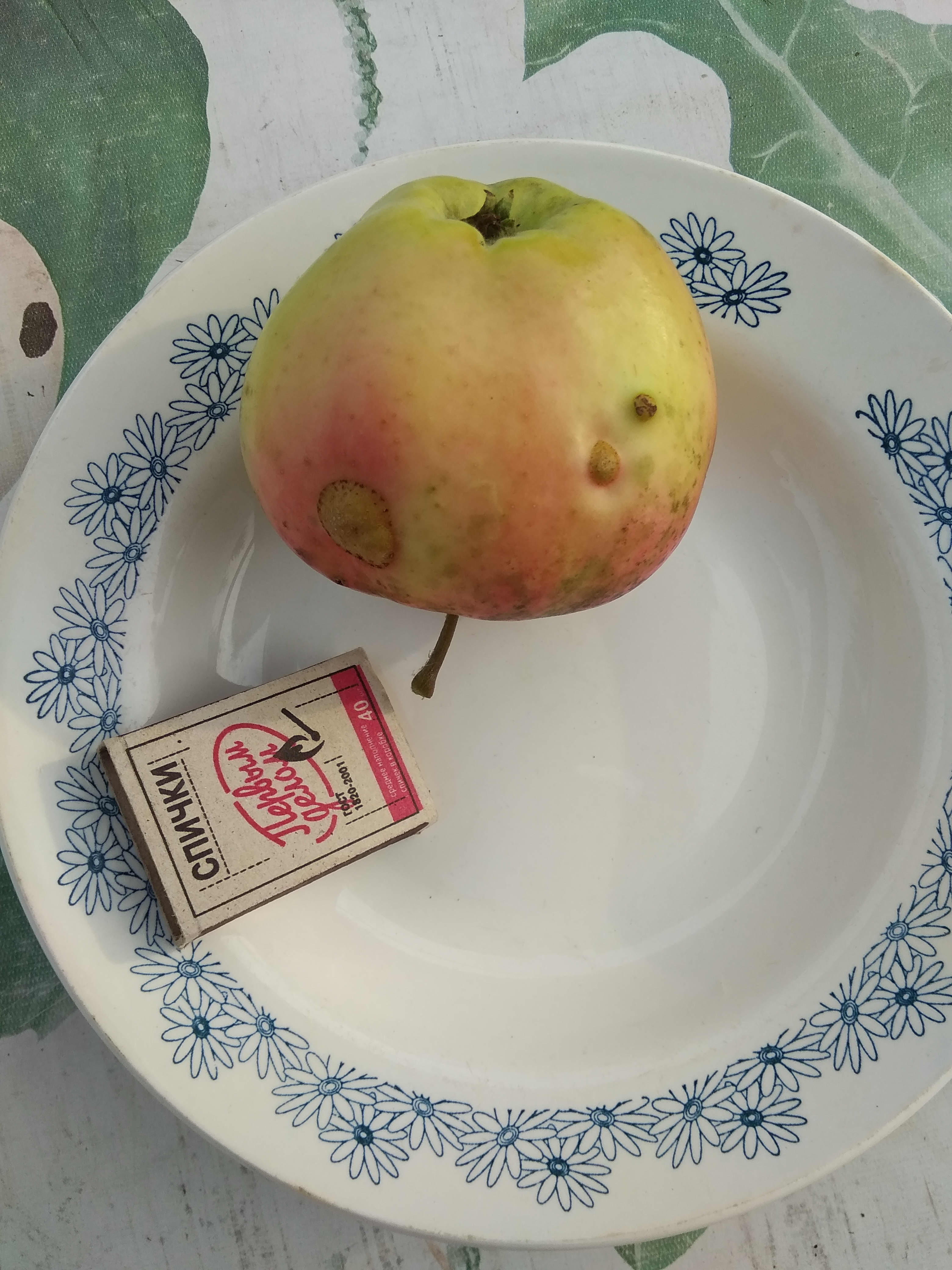 Яблоко позднее, вкуса средненького, но сочное и не кислое. Нарезал в этом году черенков. Много. Яблоне осталось недолго, судя по виду ее полулежачему.