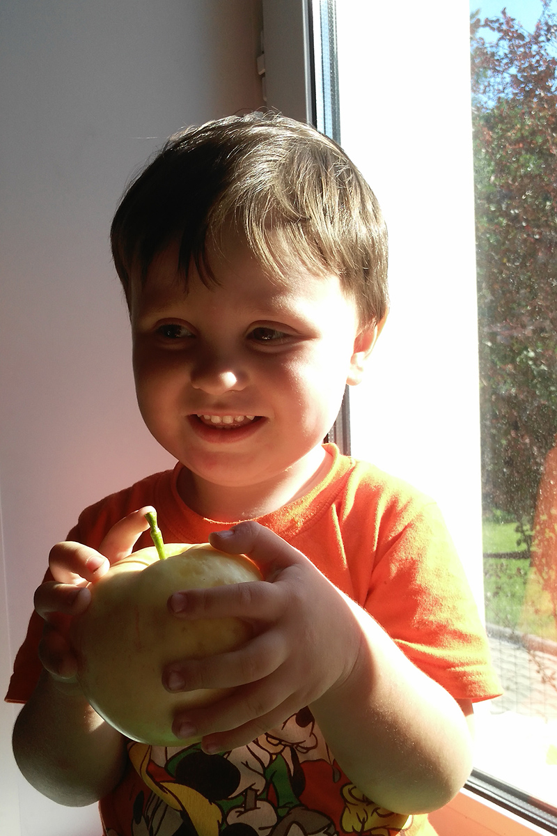 Возможно ли определить сорт яблони? Омолодил старое дерево в саду от предыдущих хозяев, поэтапно удаляя за несколько лет сухое, больное, старое, лишнее. В результате получилось молодое дерево, идущее от низа старого штамба. Возраст старого дерева не меньше 20ти лет. В результате отлично плодоносит. Плоды созревают в середине августа, мякоть рыхловатая, вкус приятный, без ярко выраженной сочности и оттенков. Мальчик для масштаба.