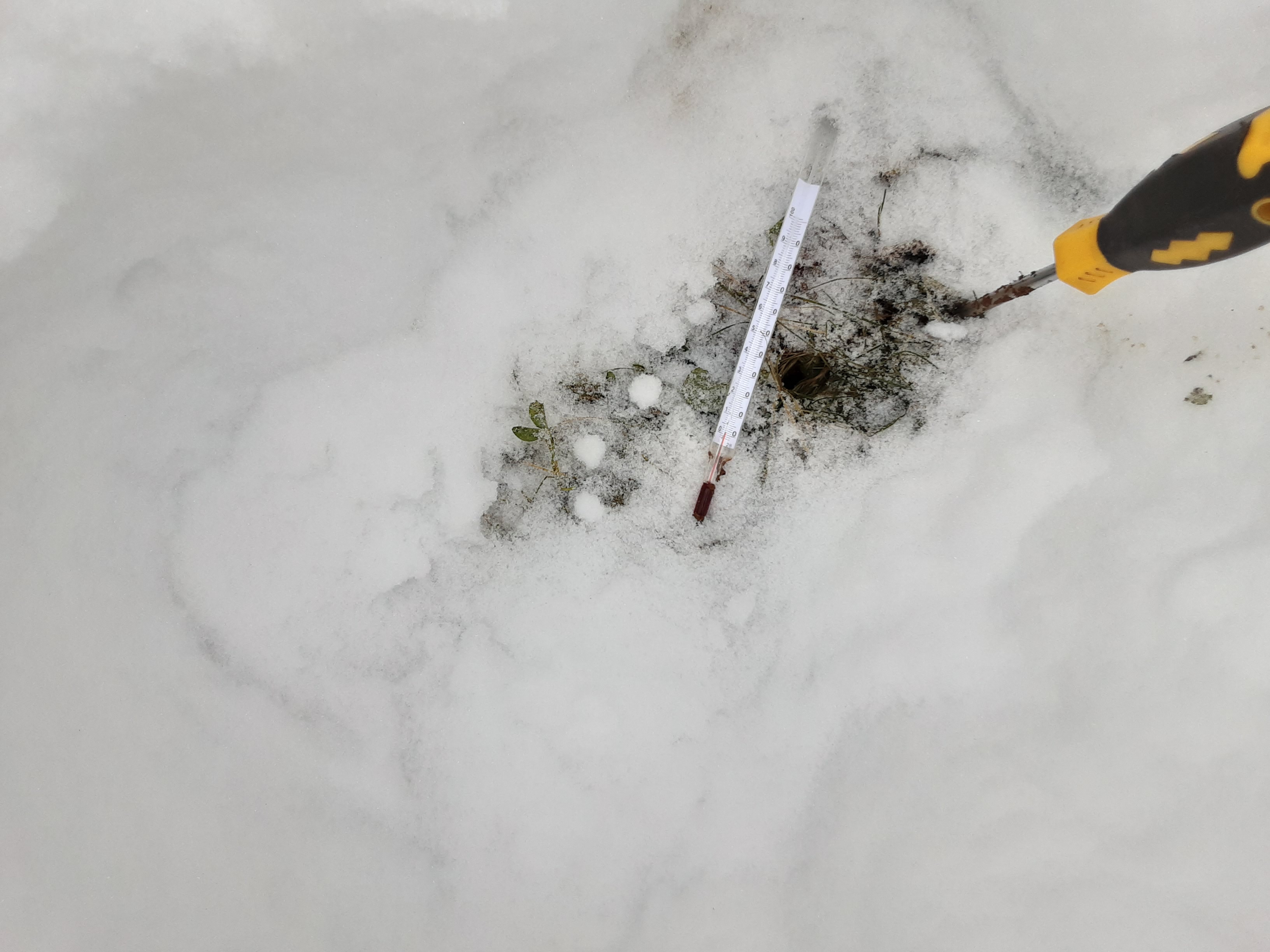 3 января под Клином. Т воздуха - минус 9гр. Снежный пласт 30 см. t грунта под снегом - плюс 1гр.