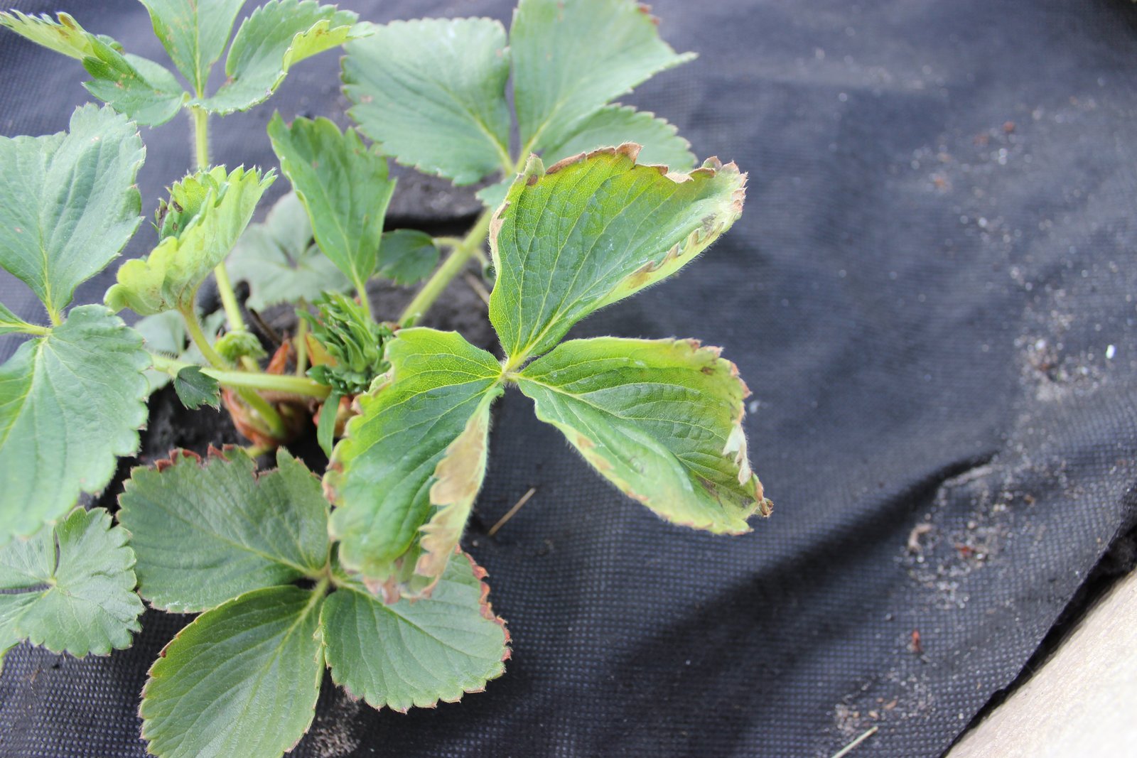 Сегодня подошла к клубнике и почти у всех кустов обнаружила как бы обгоревшие края на листьях.