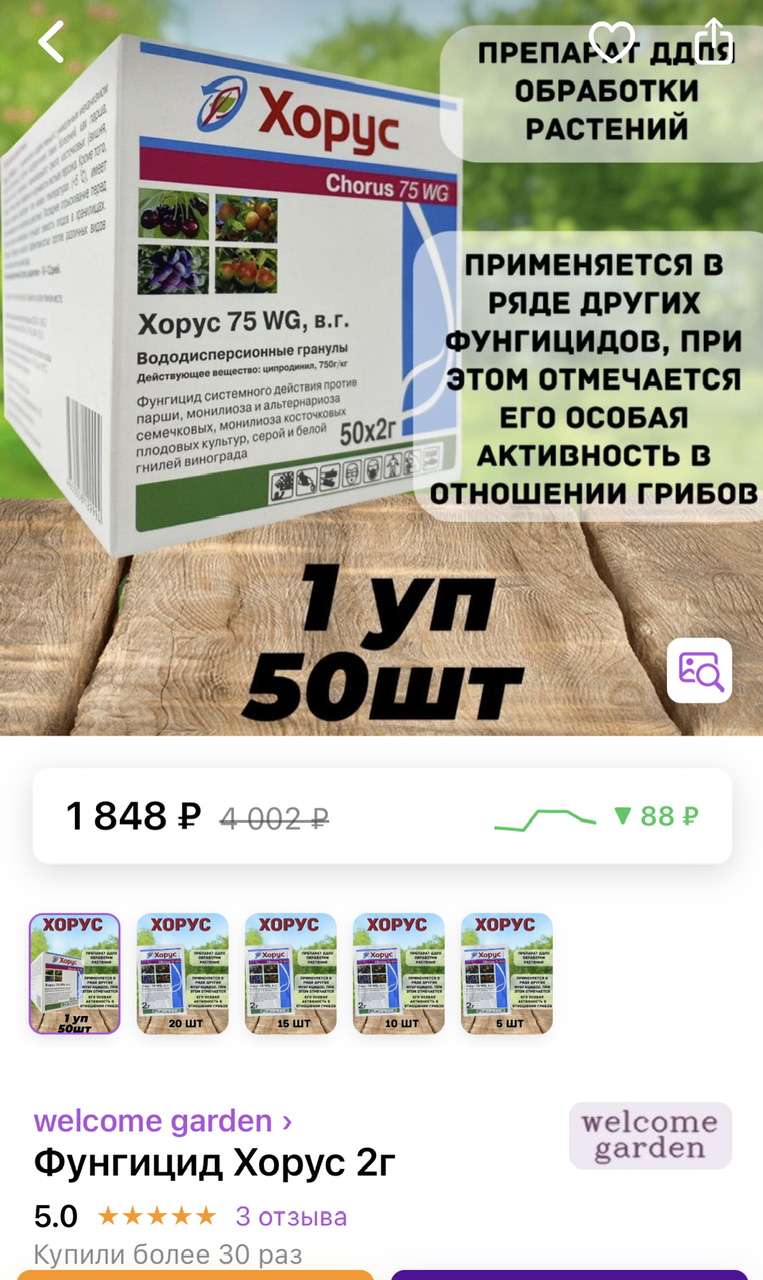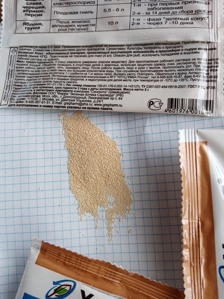 После цветения, делал вторую баковую обработку сада от вредителей и болезней. Обычно- растворяю в разных емкостях и смешиваю. Но с Хорусом, которым пользуюсь достаточно давно, пошло не так-(вновь купленный) не растворялся в воде !! Пришлось заменить на Скор(был в запасе).ДимаКо писал(а): ↑04.06.2023, 09:11Есть сомнения в качестве препарата этого производителя «Зелёная аптека», цена 18,68₽/грамм,