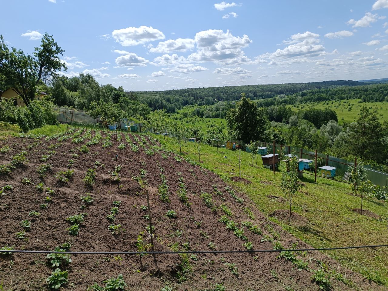 yri, нет ну у склона есть свои минусы. Ветренно и не защитишься от него, стремянку не везде нормально поставить можно. Один раз уже летал с неё в этом году. А так конечно когда весной выходишь в сад, в долине под холмом травка серебрится от инея, а на участке заморозка нет, становится приятно.