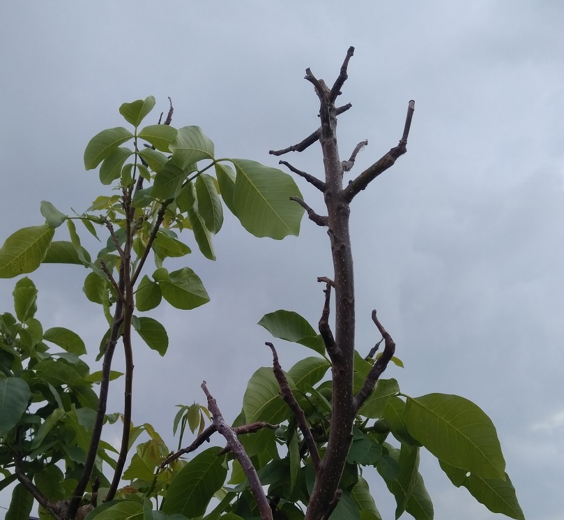 Здравствуйте. подскажите пожалуйста, как правильно обрезать этот орех(фото) дереву 3.5 года. высота до макушки 2.5 метра. когда лучше обрезать? прямо сейчас или весной, если весной, то когда? и чем замазать места обрезки?