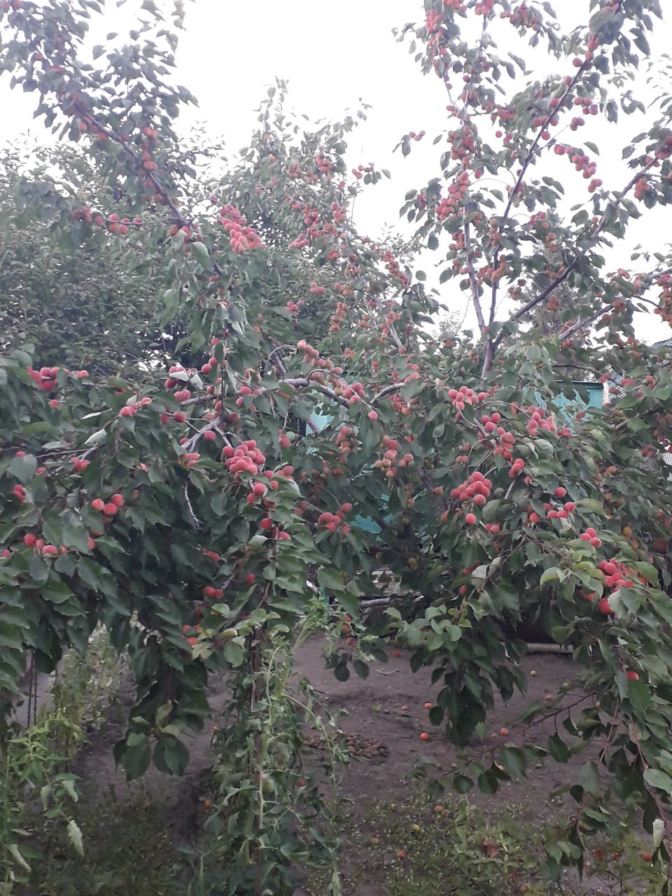 Начали созревать плоды на сеянце 1993 года посадки, скорее всего со среднеазиатскими генами, по вытянутой форме косточек и вкусу очень похожи на Шалах, но разве что размером не дотягивают до него раза в два. Плоды крупнее чем у Амура, очень сладкие и мякоть плотная, не мучнистая. Даже упавшие с 5-6 м спелые высоты не мнутся. Килограмм 40 с дерева точно будет.