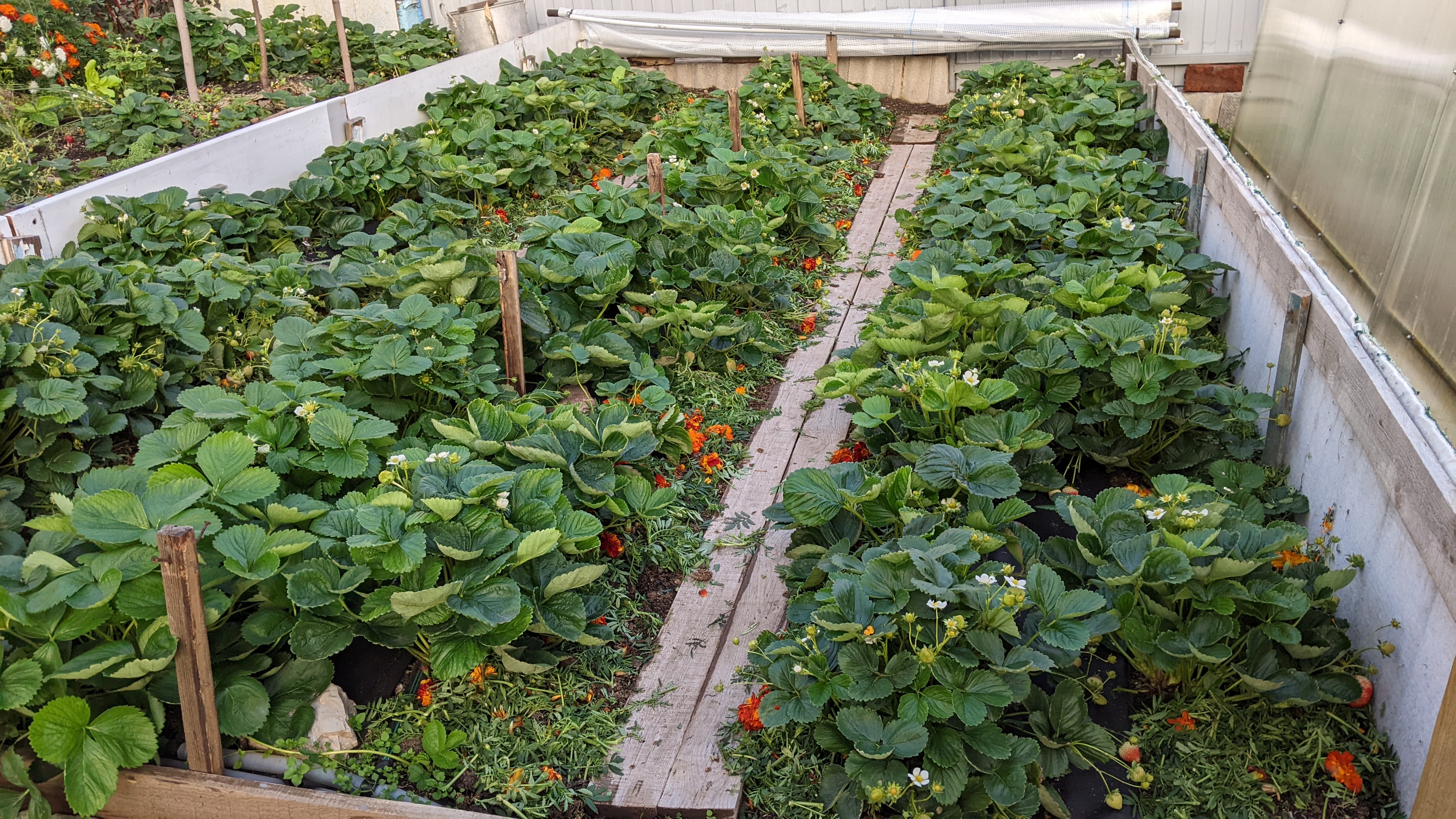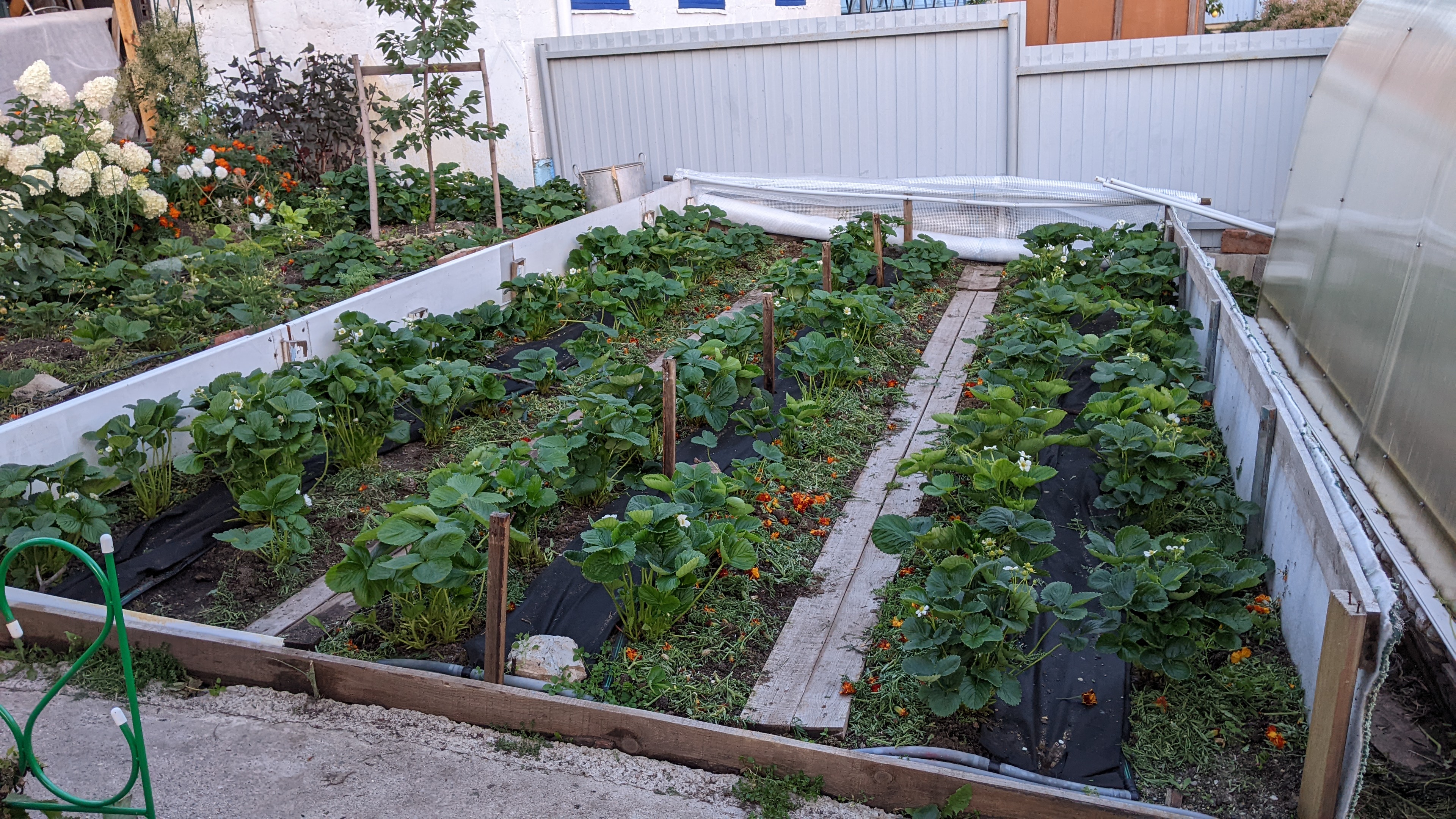 Весной после схода снега на земле появился налет, похожий на снежную плесень. Проливал раствором медного купороса, не жалел. Не уверен, но это могло сказаться на кальциевом голодании некоторых кустов земляники, хотя оно проявлялось и на необработанных медью грядках.