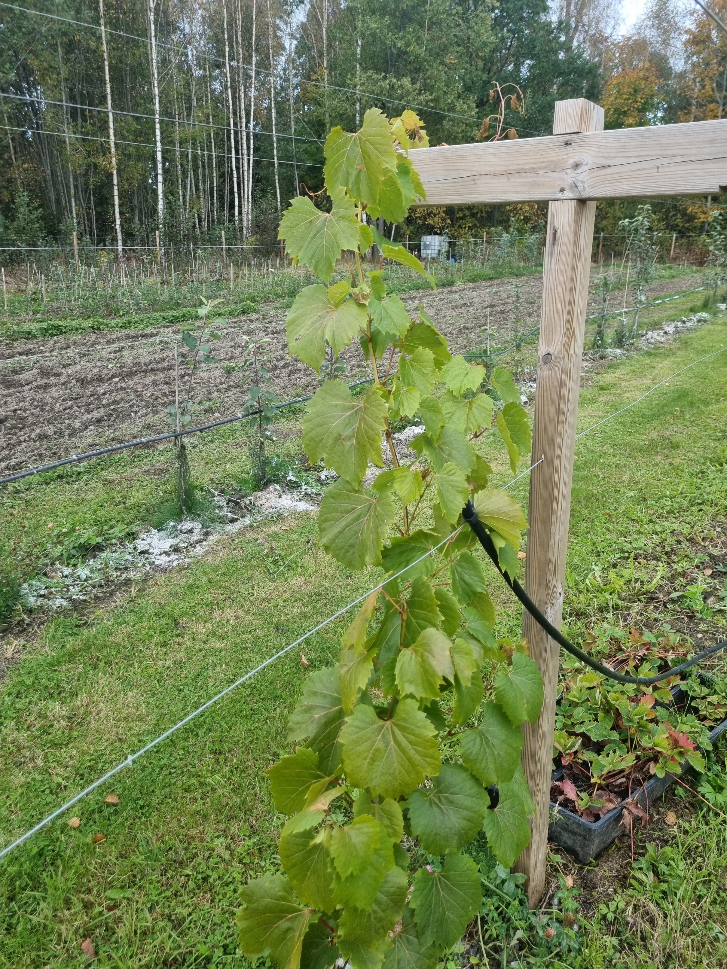Несмотря на первые заморозки, виноград ещё не все листья потерял. Некоторые сорта имеет кожистую структуру, например Супага. Было -3, все не почем. Возможно удобрения по листу помогли немного.