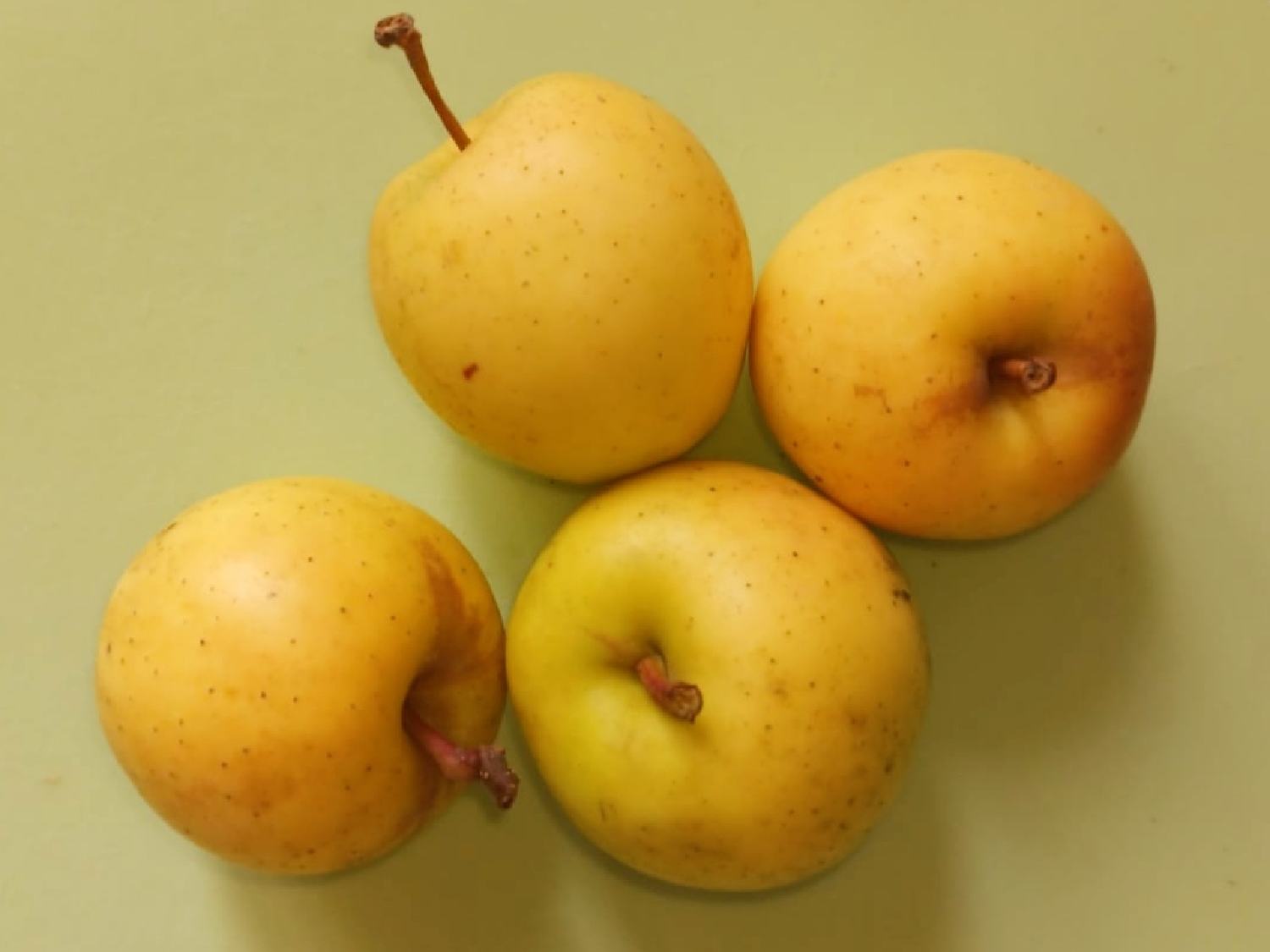 Про Гринсливз всё верно, вкусом больше напоминает второго родителя - Джеймс Грив. Чисто осенний сорт, быстро теряет качество мякоти даже при хранении в холодильнике. Яблоки с дерева намного лучше, могут долго висеть на ветках не осыпаясь и не перезревая. А о родословной Изумруда неизвестно практически ничего. Информации нет даже на сайте оригинатора - киевского питомника Шони. Вполне вероятно, что Голдена там нет вообще. Это может быть сеянец какого-нибудь зеленоплодного сорта типа Симиренко или Гренни Смит.