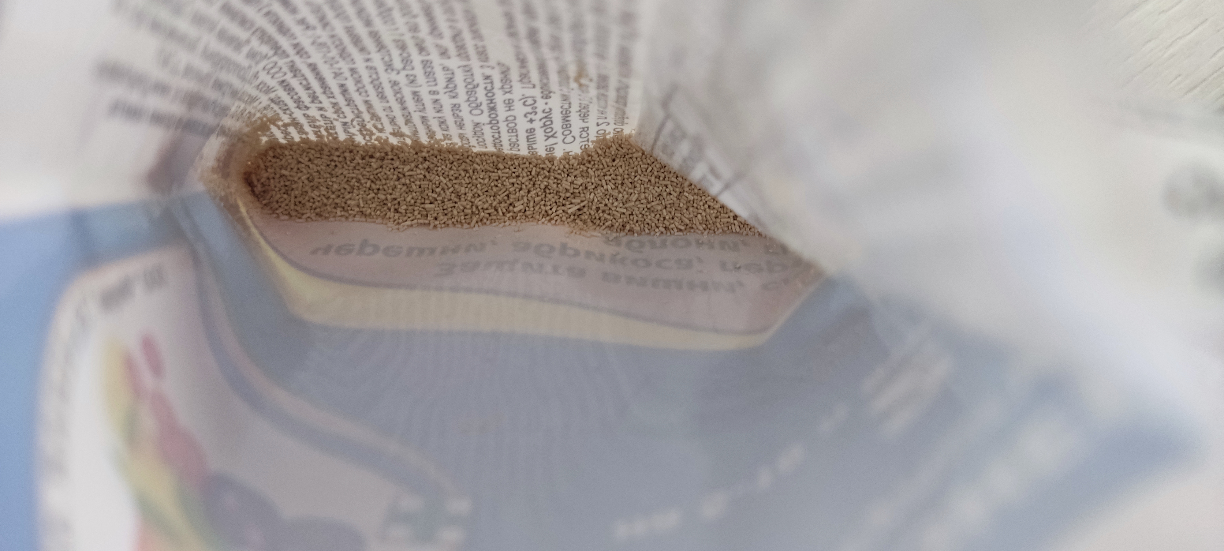 Гранулы не такие, как в настоящем. В настоящем гранулы ровные, тонкие, серого цвета.