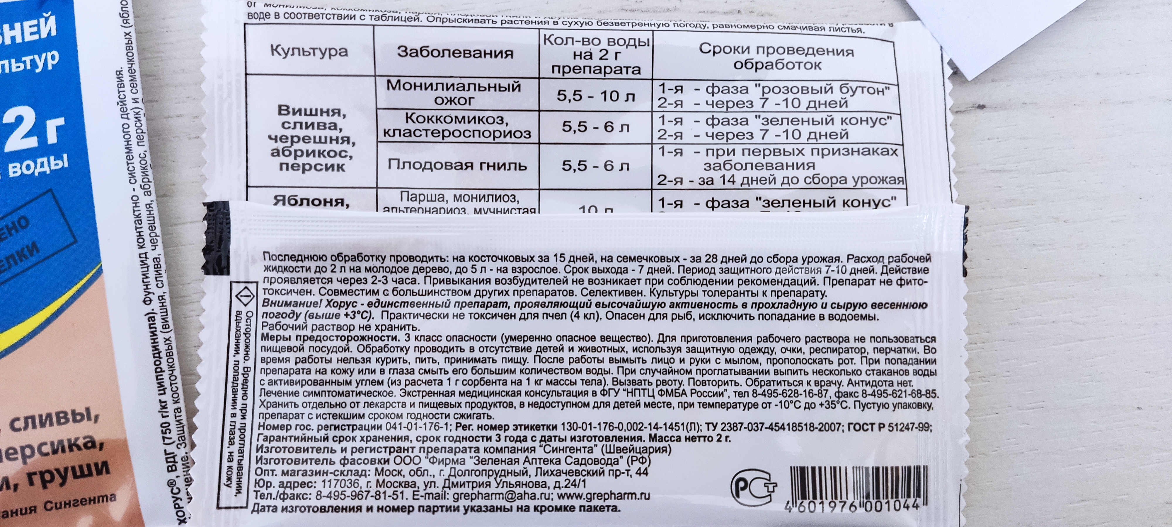 Коллега, смотрите цену. Цена настоящего Хоруса от Сингенты (фирм. упаковка 1 кг.) стоит около 25 т.р. Делайте выводы. Плюс там вроде срок регистрации закончился (у Сингенты). Я заменил обработки Хорусом на Топсин-М и Луна Транквилити (в разных баковых смесях конечно).