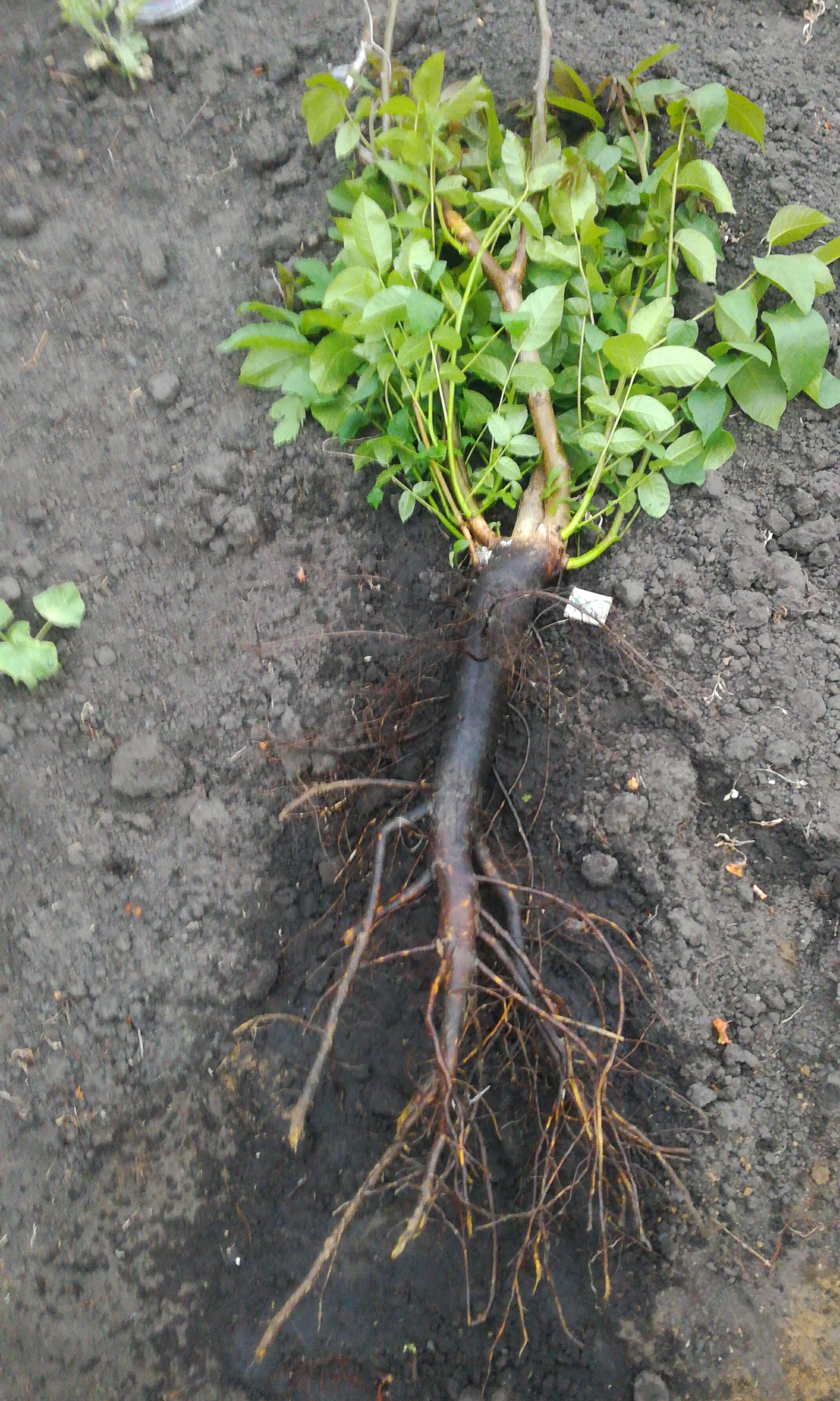 Таких глубоких ям не копал ещё, но стержневой корень удалось сохранить почти полностью, а всасывающие нарастут новые. Диаметр ствола у комлевой части около 10 см,на фоне спичечный коробок.