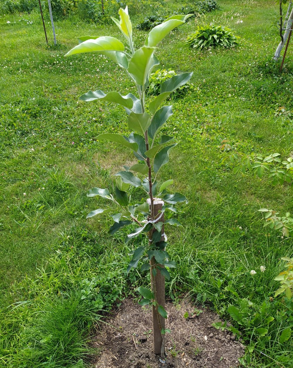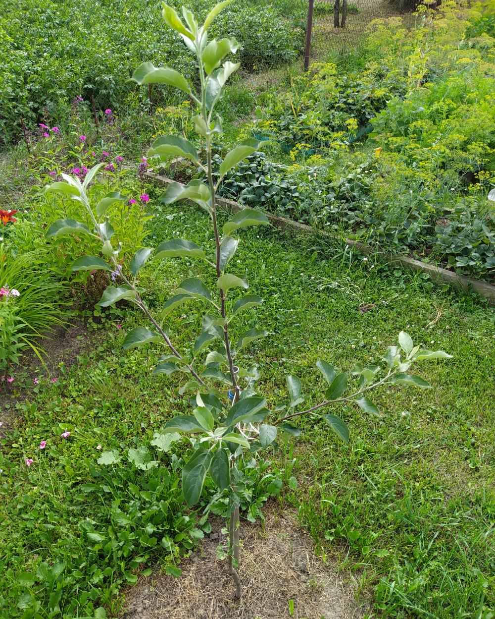 Саженец Космик Крисп,полученный этой весной от Лета и вызвавший кучу обсуждений о своем происхождении, благополучно развивается, посадил на южной стороне дома.Прирост 45см.