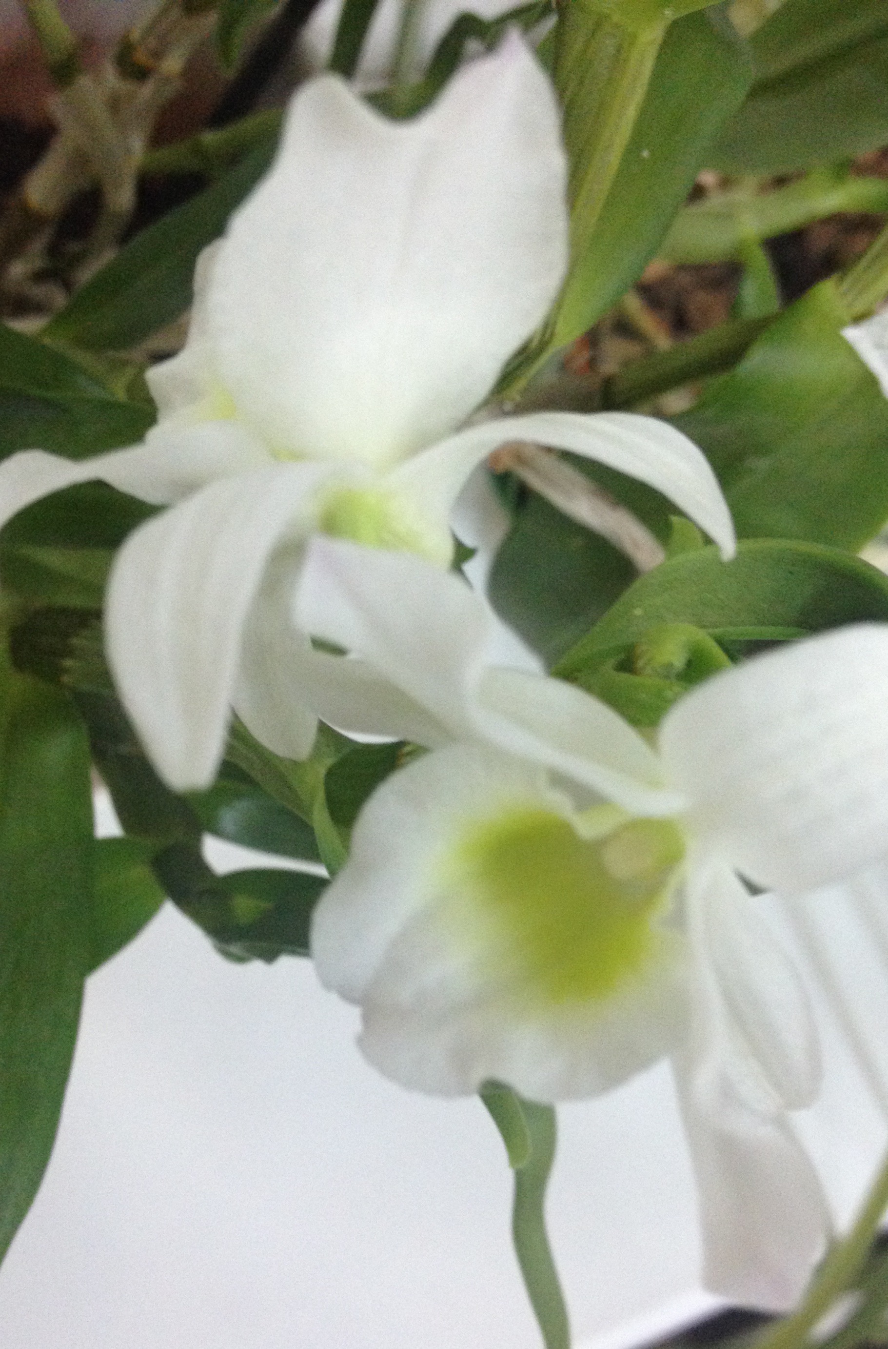 Первое домашнее цветение Дендробиума нобиле. Сначала зацвел только один из трех новых побегов. К тому времени, гда распустились остальные два, первый отцвел.