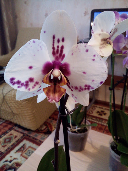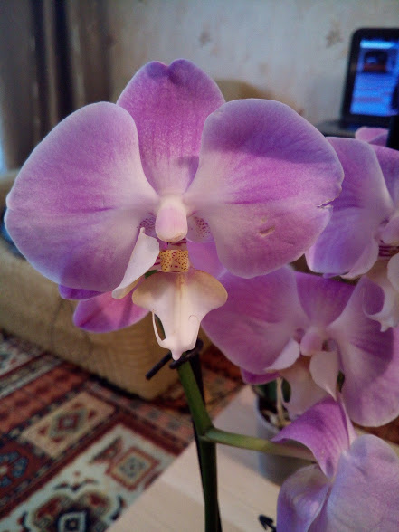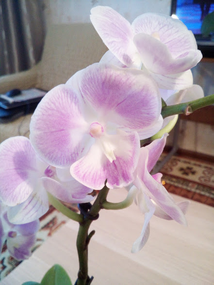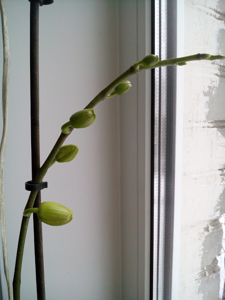 вчерашний бутон раскрылся (это моя экспериментальная орхидея) и плюс еще один пока не полностью раскрылся
